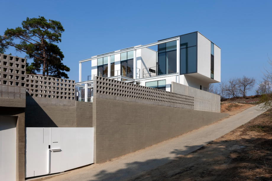 대지의 남서 측에 있는 저수지가 보이도록 건물을 배치했다. 대지의 북서 측은 대지보다 높아서 주변이 녹지로 둘러 싸여진 조건이다. 북서 측에는 나라에서 관리하는 공원이 있는데, 건물의 배치에 주요 고려사항으로 작용했다. 남측의 도로에서 지하로 진입하는 주차장 공간을 활용하여 이것을 최대한 이용하여 주차를 가능하게 했다.