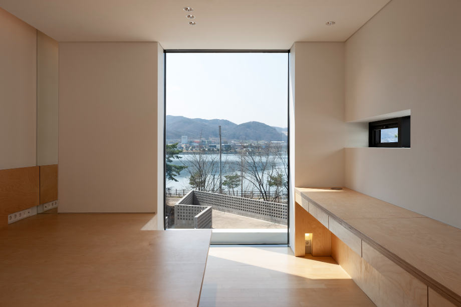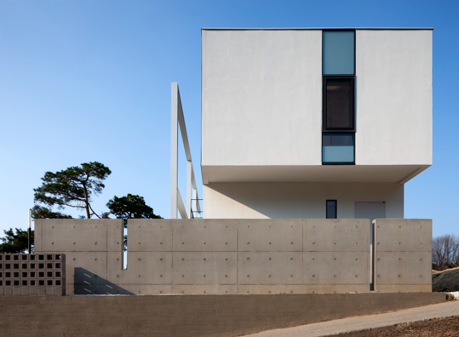 건물은 철근콘크리트 옹벽 구조이고, 전면부는 철골로 구성된다. 건물의 면적이 작은 이유로 슬래브 하부에 보를 만들지 않을 수 있었다. 또한, 옹벽 내부에 테두리 보를 만들어서 내부에 어떤 구조체가 노출되지 않도록 했다. 이는 천장고를 더 높일 수 있고, 벽에 간접조명을 만들 수 있게 한다.