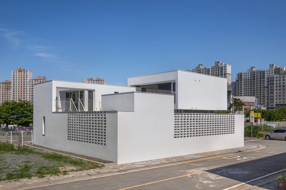 시골집, 양옥, 아파트를 지나 다시 만난 가족은 지금껏 경험한 여러 집의 DNA가 새겨진 이 장소에서 익숙하고 편안한 감각과 새로움에 대한 기대감으로 함께하는 일상을 준비 중이다. 집의 밝고 하얀 경관은 가족들의 다양성을 결합하고, 마을 입구를 지나치는 많은 이들에게 환한 첫인상이 되어줄 것이다.◼︎
