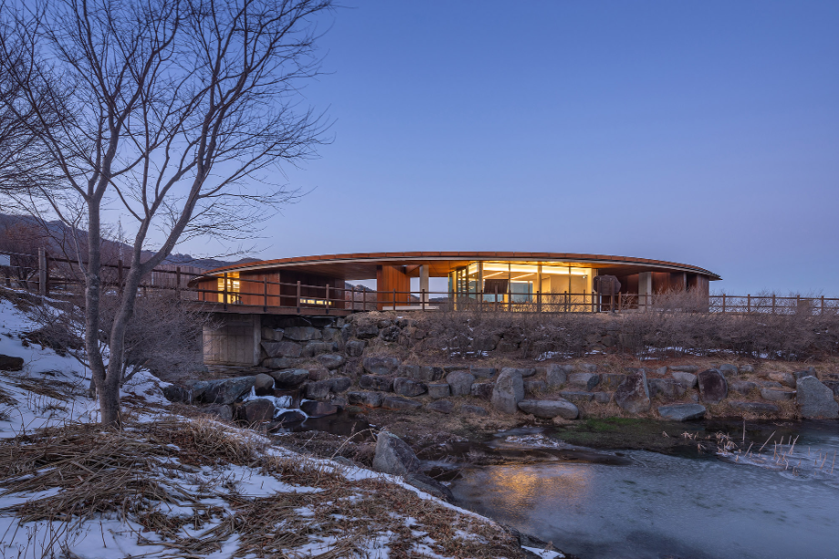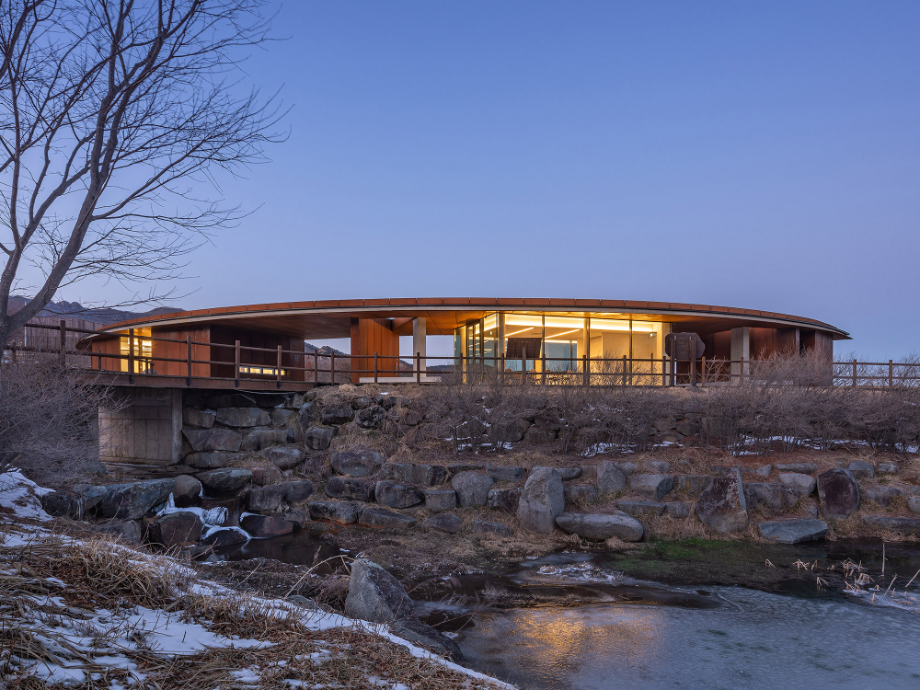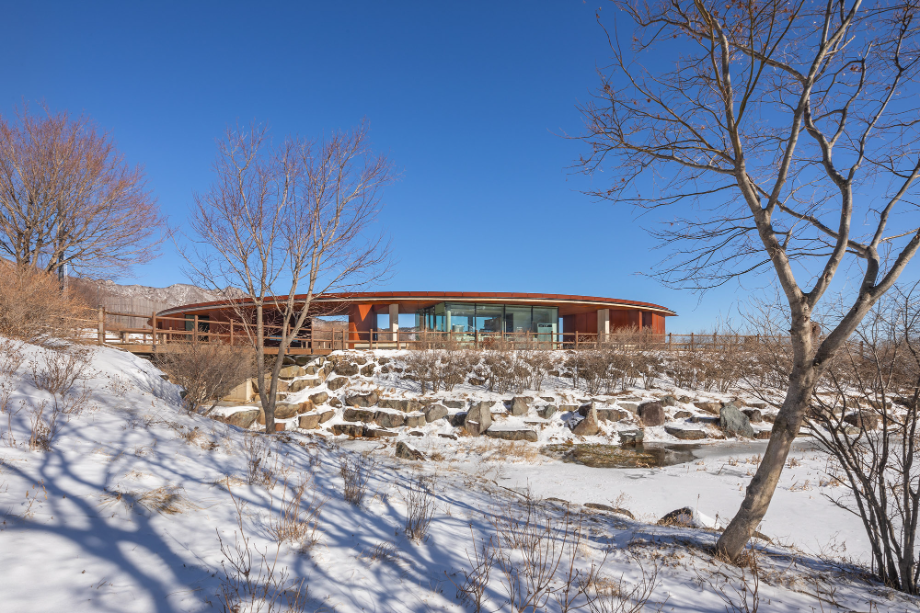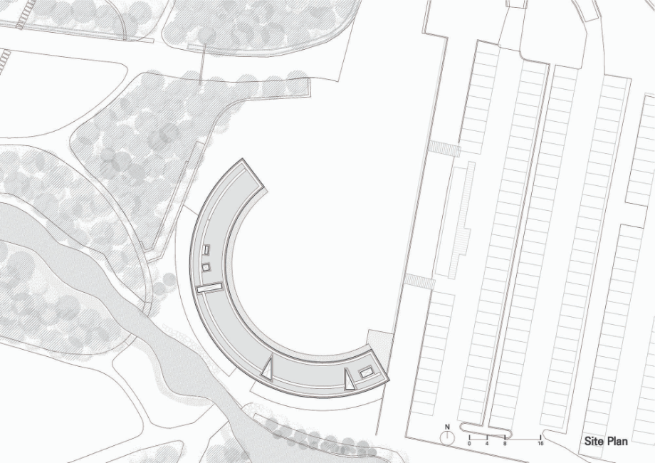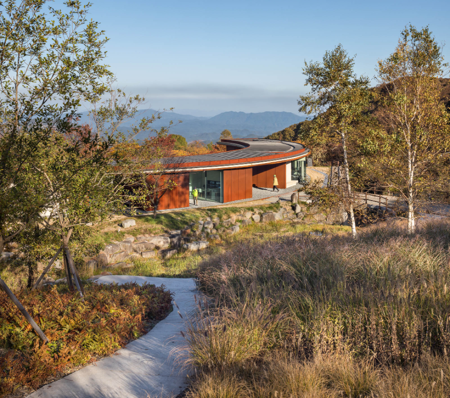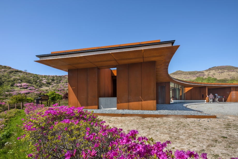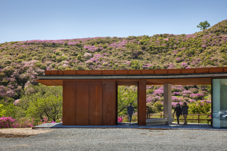 반원 모양으로 펼쳐진 건물은 군데군데 이가 빠진 것처럼 공간이 비어있다. 산으로 올라가는 동선이 건물로 막히지 않고 어디로든 연결되고, 봄에는 철쭉이, 가을에는 억새가 사이사이 틈새마다 들어온다. '철쭉과 억새 사이'는 건물의 틈으로 철쭉과 억새가 언뜻언뜻 보이는 모습을 상상해 지은 이름이지만, 한편으로는 철쭉 보러 봄나들이 갈까, 억새 보러 가을여행 갈까 고민하는 우리의 마음을 은유하기도 한다.