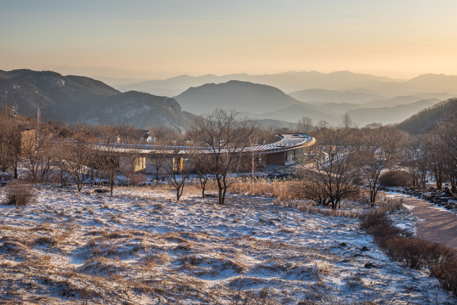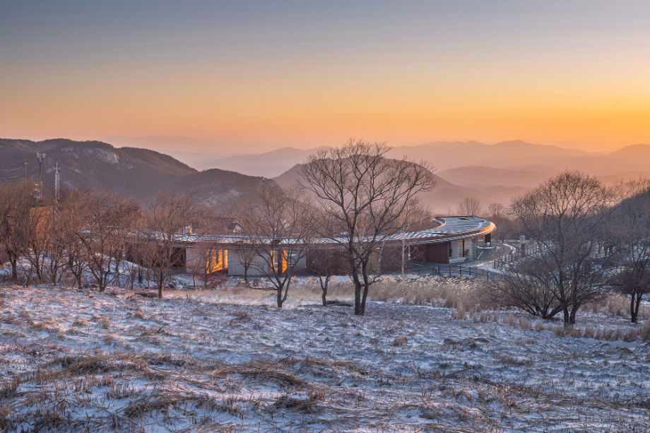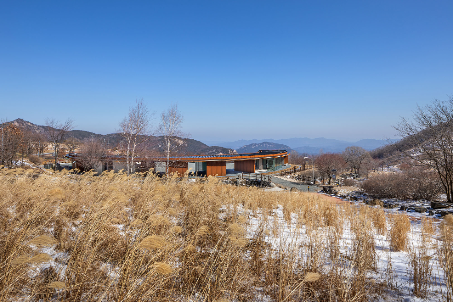 처음 황매산에 올랐을 때는 가을이었다. 억새군락이 산 전체를 덮고 있었고, 서쪽으로 기울어진 햇빛을 뒤로 받은 억새밭이 작은 바람에도 마치 은빛 비늘처럼 일렁였다. 억새를 보기 위해 반드시 지나가야 하는 길목에서 건축이 할 수 있는 일은 별로 없어 보였다. "자연의 기록에 사람의 흔적을 최대한 남기지 않는 건축 방식은 무엇일까?"라는 고민만이 머릿속을 가득 채웠다.