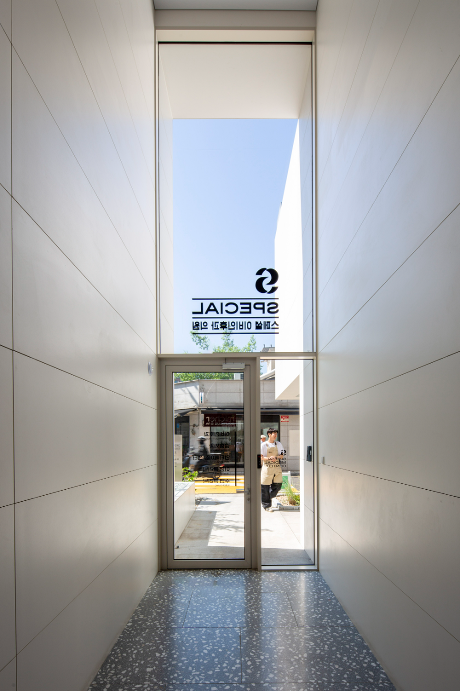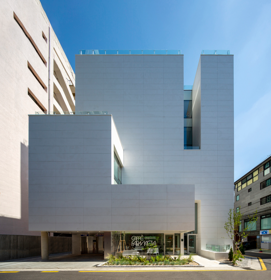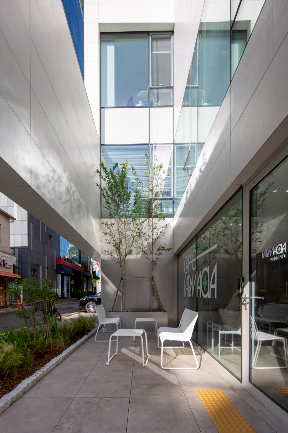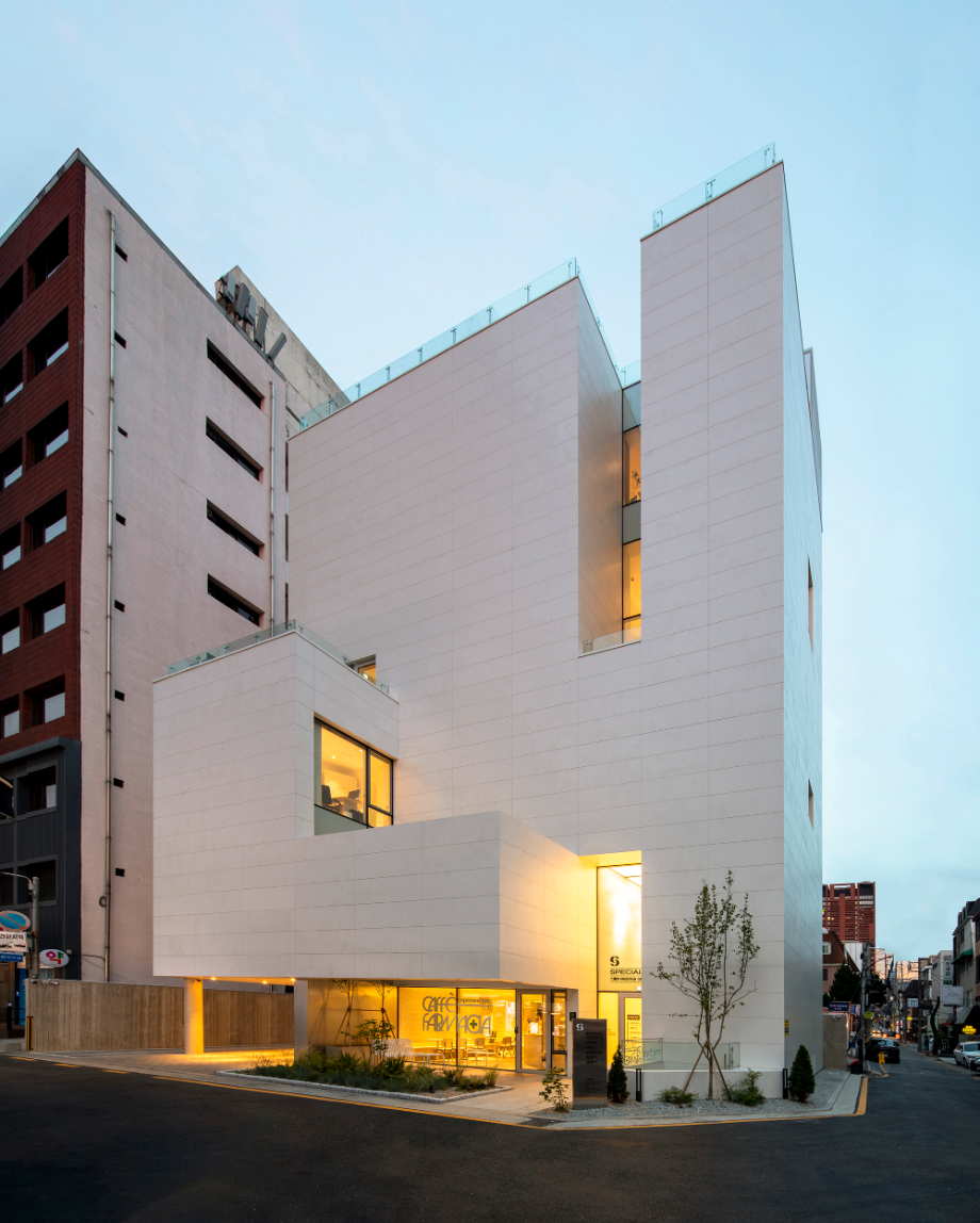 디자인의 첫 번째 방향은, 강남대로 이면도로변의 번잡한 환경 속에 '마당'을 제공하는 것이었다. '마당'은 이면도로에 새로운 생명체와도 같이 살아있는 가로환경을 만들어 주길 기대한다. 두 번째 방향은, 건물 내부에 도시를 향한 열린 '틈'을 만드는 것이었다. '틈'은 도시로 열린 경관을 만들어내며, 건축과 도시의 관계성을 강화한다.