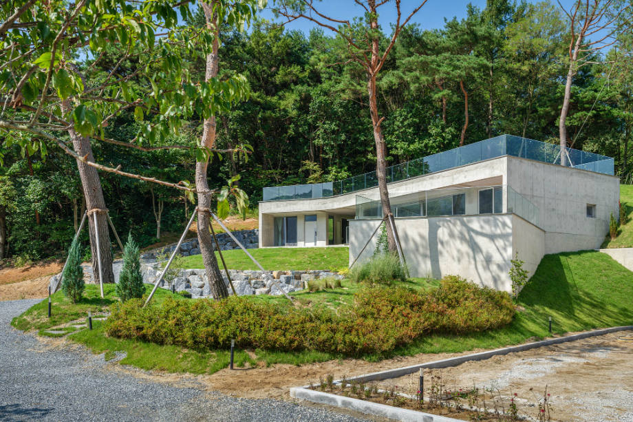 이 건축은 외부에서는 자연과의 동화작용을 통해 자신을 감추지만, 내부에서는 전략적으로 열어낸 틈을 통해 외부의 자연을 충만하게 담아낸다. 유기적인 형태를 취했지만, 이는 조형적 수사의 결과가 아니가 관계의 유기성에 대한 고민의 결과다. 자연이 써 내려온 이야기 속에서, 이 건축은 마지막 문장의 ‘쉼표’로 존재하길 바랐다.◼︎