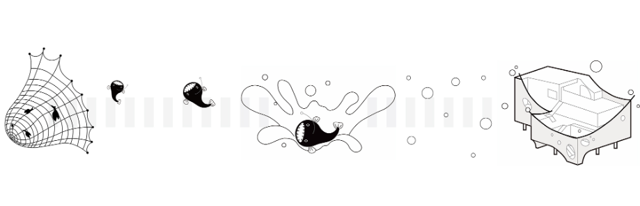 사업부지는 '물텀벙 특화음식거리’의 초입에 위치하고 새롭게 재개발되는 아파트 주거단지와 아파트 상가건물이 바로 인접해 있고 비슷한시기에 공사가 완료될 예정이었다. 규모에 비할 바는 못되지만, 강렬한 존재감으로 자기의 목소리를 낼 수 있도록 물이 텀벙거리면서 튀어 오르는 모습을 모티브로 하여 건축물의 파사드를 재구성했고 다양한 레벨의 테라스를 통해 건물의 내부와 외부 공간을 구성하는 것이 이 프로젝트의 주요 컨셉이었다.