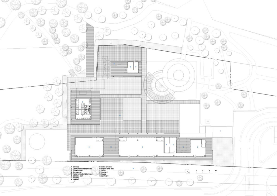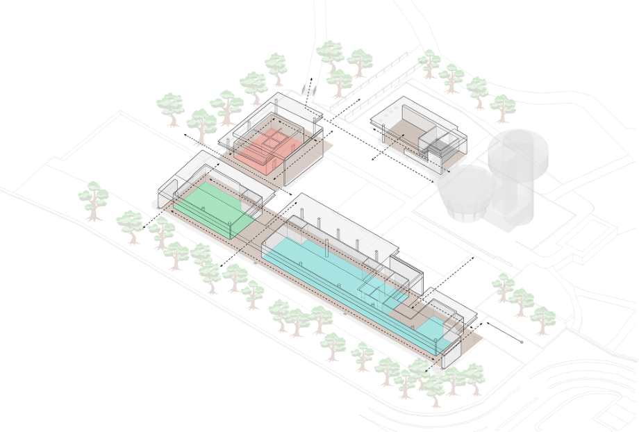 가장 중요한 개념은 '걷는 흐름'이다. 산책로는 건물을 관통하며 끊김 없이 이어지고, 내부와 외부를 오가며 경험은 하나의 연속된 장면으로 확장된다. 중정과 광장은 그 흐름의 여백을 만들어, 머무름과 이동이 자연스럽게 교차하도록 한다.
