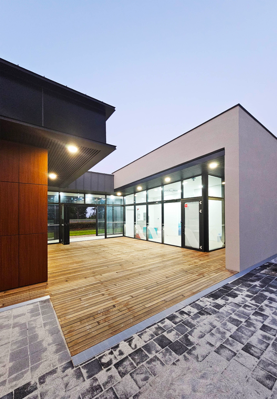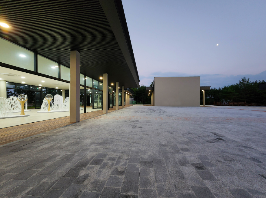 긴 처마와 중정은 빛과 바람을 받아들이는 장치로 작동하고, 실내 곳곳에서 자연의 변화가 포착된다. 바다와 숲, 호수가 교차하는 이 환경 속에서 건물은 조형물로 존재하지 않는다. 걷고 머무는 행위를 통해 자연과 사람을 잇는 공공적 장면으로, 풍경 속에 조용히 스며든다.◼︎