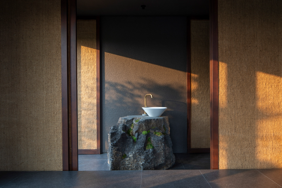 한라산과 오름이 어우러지는 제주의 봉성리 마을, 그 땅 위에 놓인 '와타'는 탐라의 미를 정제된 감각으로 담은 숙박 공간이다. 우리는 제주의 고전적 풍경과 그로부터 비롯된 사유를, 이 장소만의 감각과 정서로 이어지는 사색적 분위기로 구현하고자 했다. 땅의 서사적 아름다움은 차분한 음영의 그윽한 아취로 건축에 깊이를 더하며, 차분하고 오래된 정취로 새겨진다.
