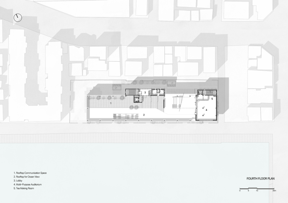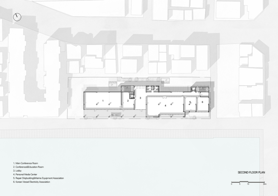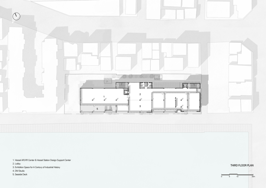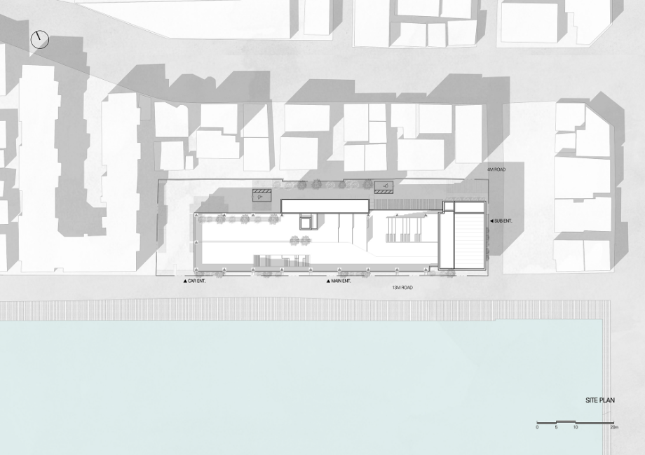 기존 토토볼링장과 실내, 옥상골프연습장으로 사용되는 건축물은 당초 기능으로 인해 폐쇄적인 공간 구조를 가지고 있었다. 이 폐쇄적인 건 축물을 바다와 서로 관계를 가지게 하고, 실외골프연습장으로 사용되 던 옥상을 도심 속 주민공유마당으로 사용되길 희망했다.