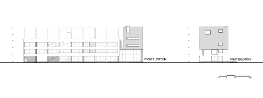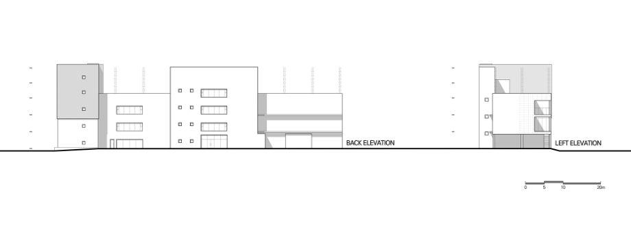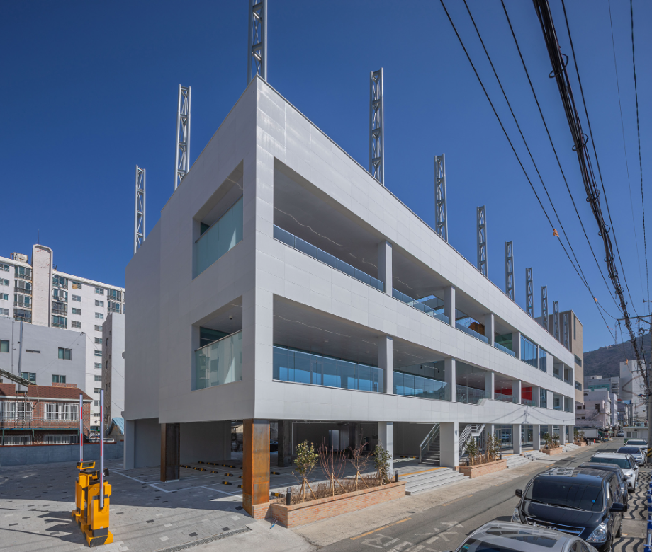 기존 건축물의 외피를 벗겨내고 테라스 및 옥상으로 이동하는 외부계 단을 배치하고, 옥상은 전체 휴게공간으로 탈바꿈하였다. 좁은 전면도로는 보행전용 아케이드를 구성하여, 1층의 접근성을 높이고, 1,2,3층 은 테라스 및 아케이드를 가진 열린 파사드로 디자인하였다. 건물 우측의 5개층 형태는 수평의 열린 파사드와 대비되는 콘크리트 블록의 간결한 매스로 디자인하여 주도로에서 진입시 건축물의 상징성을 고려했다.