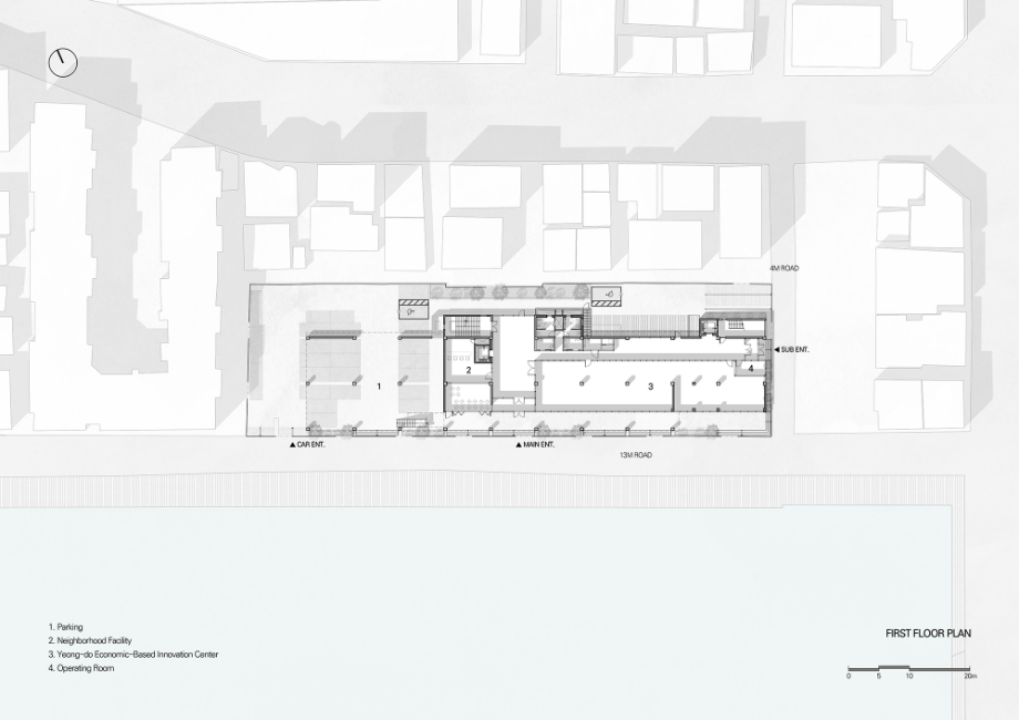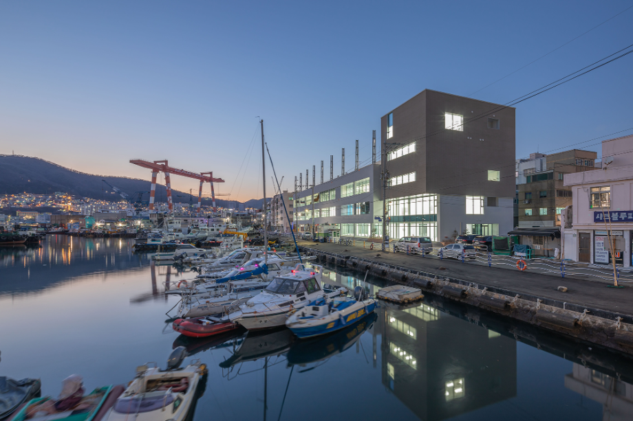 영도 굴항에 인접한 영도지역산업복지센터는 영도 도심지 굴항의 활성화 및 도심항에 지어지는 건축의 바다와 소통하는 열린 공간 창출 및 주민들이 이용하기 편리한 접근성 개선을 목표로 기존 건축물을 리모델링, 대수선, 증축의 설계를 진행하여 준공된 건축물이다.