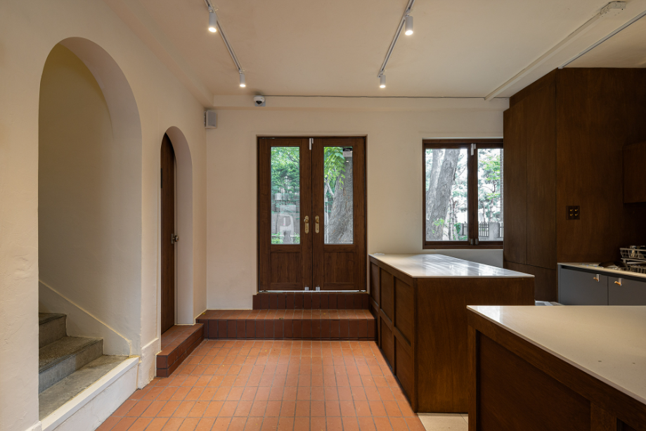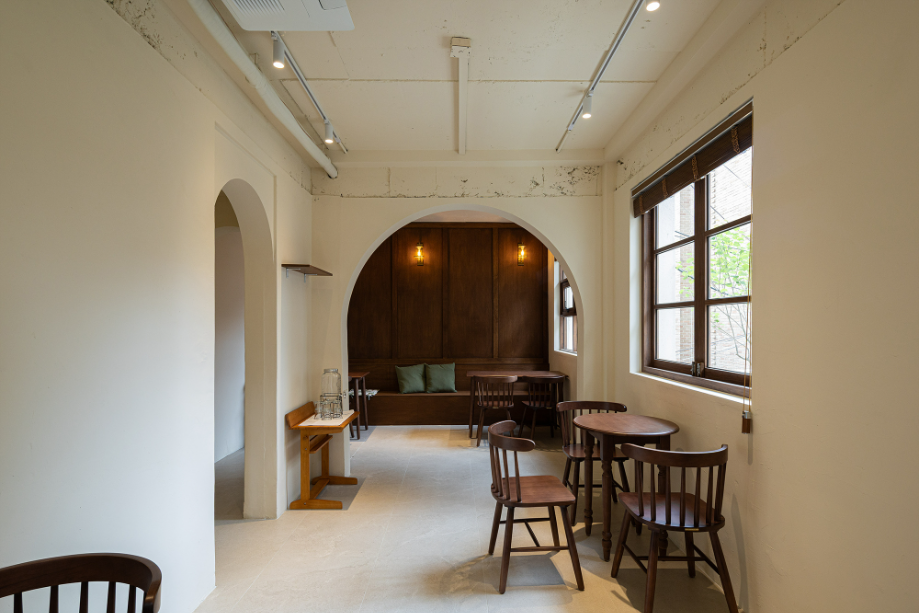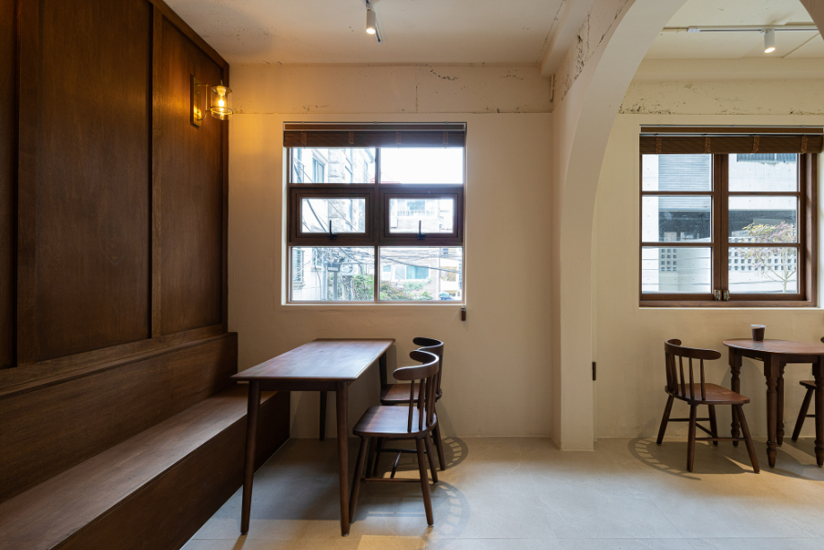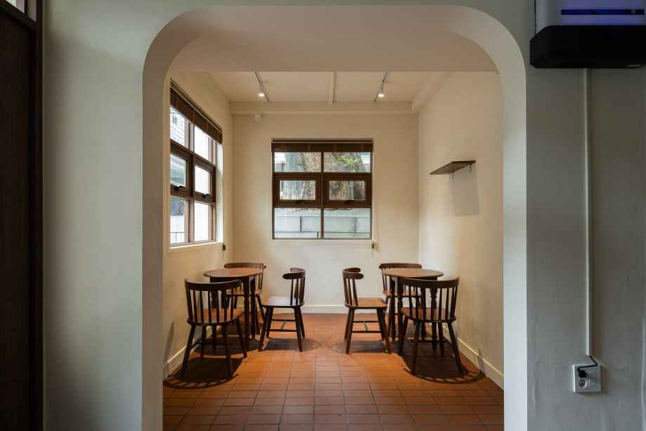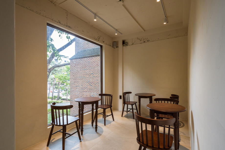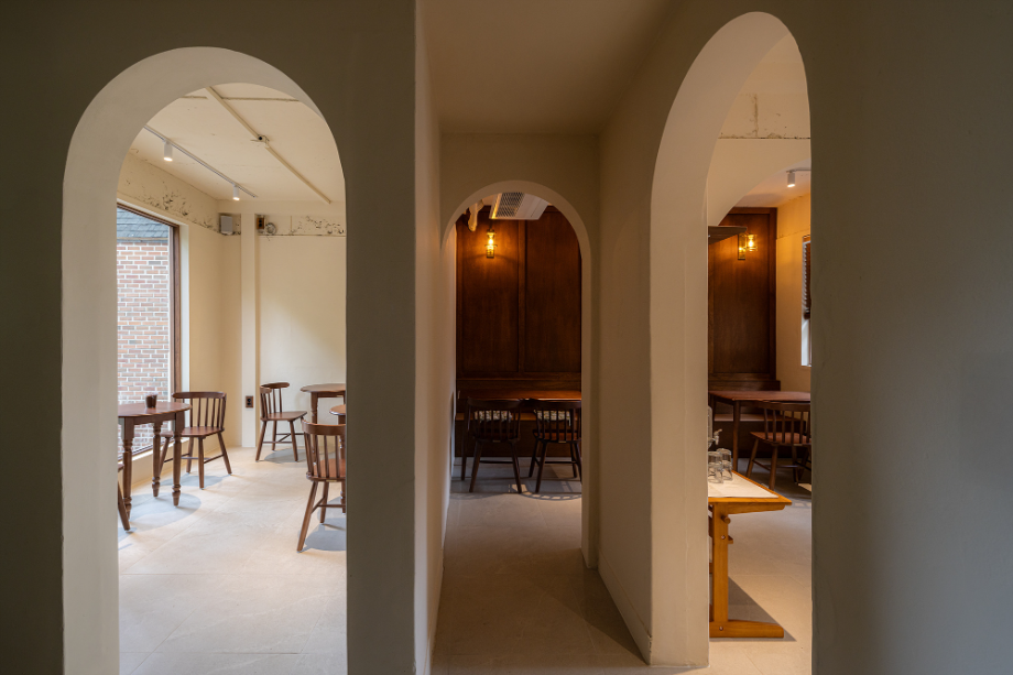 공간 구성은 의도적으로 느슨하게 유지했다. 바 테이블은 조용한 독서를 위한 자리이자 일상의 리듬을 담는 축이고, 아치형 천장 아래의 작은 공간은 낭독회나 모임이 열릴 수 있는 장소로 사용된다. 정원 쪽 창가를 따라 이어지는 긴 벤치는 단순히 앉아 나무를 바라볼 수 있는 쉼의 장면을 만든다. 공간은 명확한 경계 없이 자연스럽게 이어지며, 사용자마다 각자의 속도와 방식으로 재해석된다.
