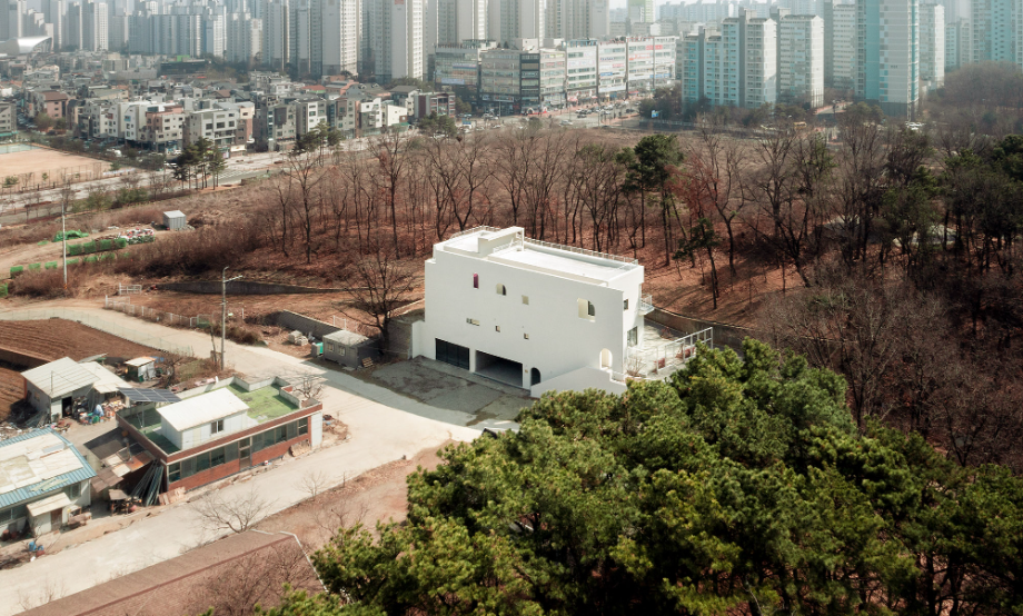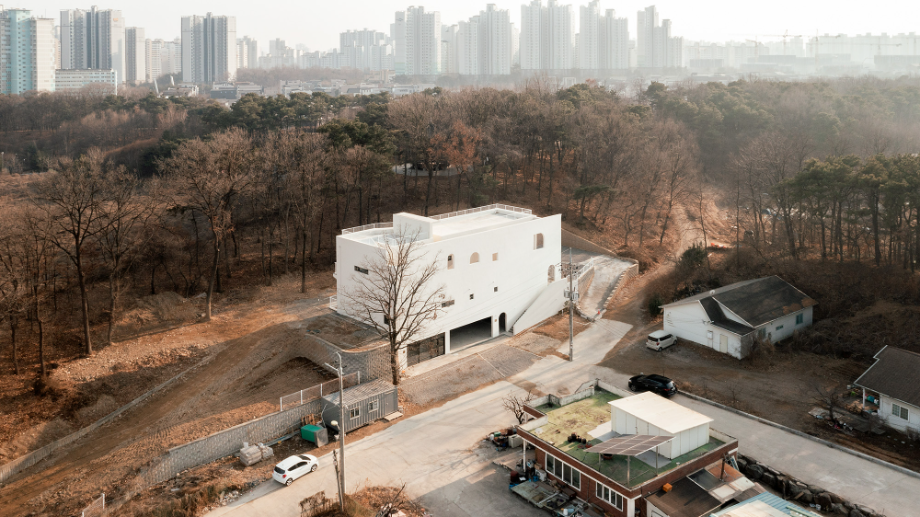 신도시의 공원과 신도시 바깥 마을의 경계에 위치한 부지에 세워지는 건물은 어쩔수 없이 기존 마을에서 바라보는 풍경을 바꾸게 된다. 땅의 지형적 특성과 근린생활시설 특성상 나무와 산이 보였던 풍경 그대로일 수는 없지만, 새로운 건물이 조금은 다정한 표정으로 마을에 조용히 말을 건네는 새로운 풍경이 되어주기를 바랐다.