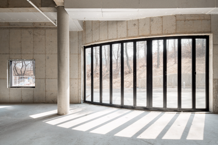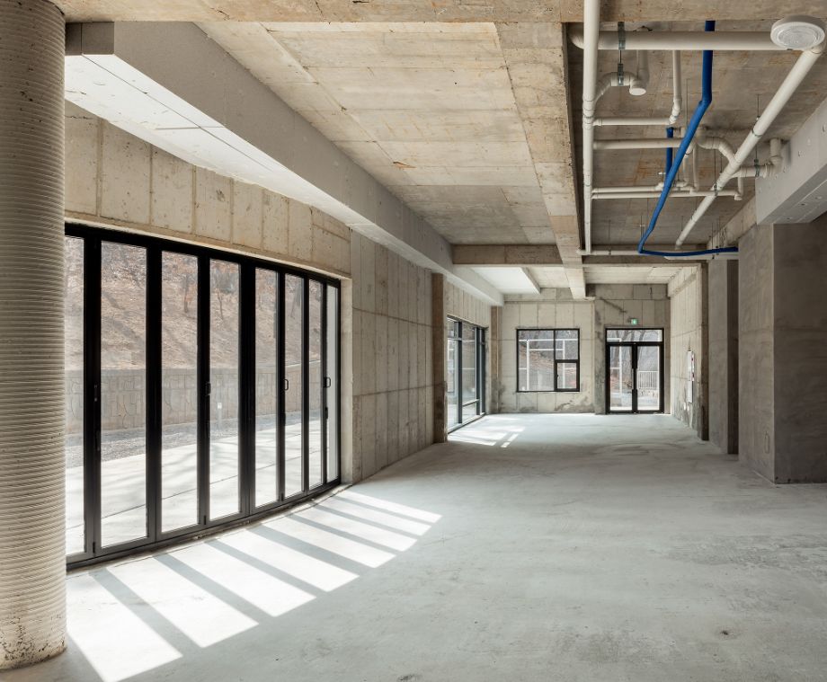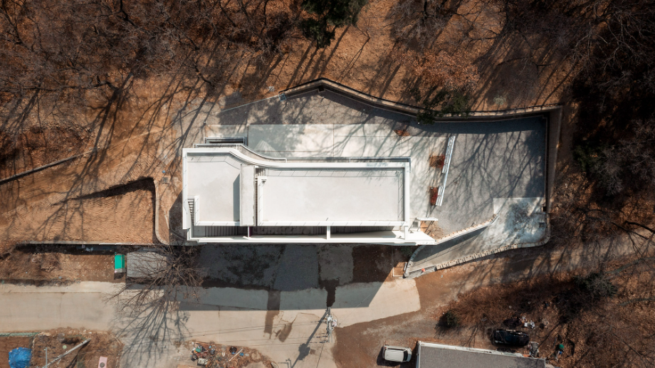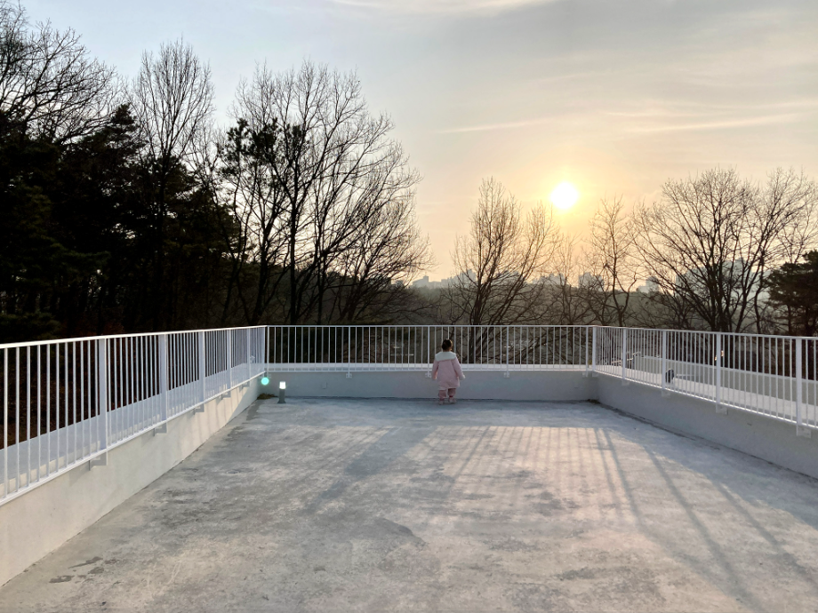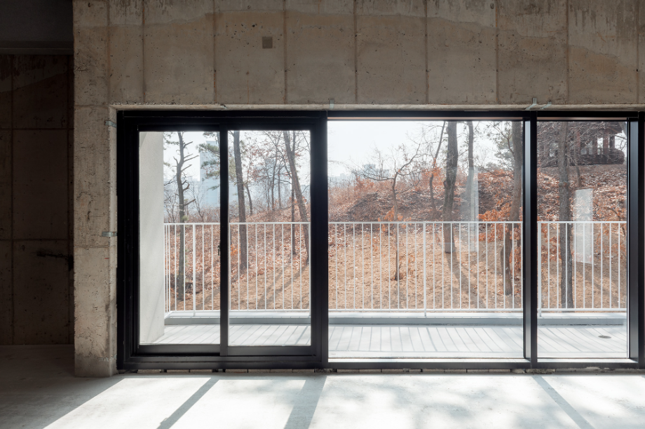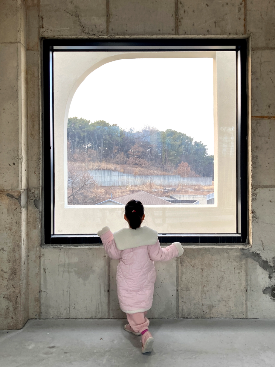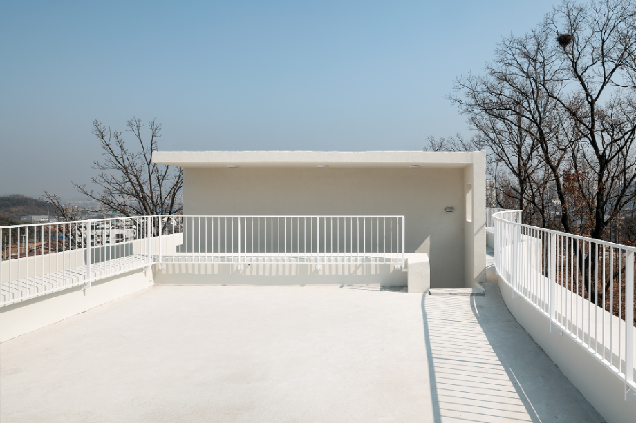 계단 옆 마을을 향한 개구부는 마을에 보내는 따뜻한 메시지이자 내부의 답답함을 해소하는 역할을 한다. 동시에 인근 군의 요청 사항이었던 진지 구축을 대체할 수 있도록 협의해, 기능적· 행정적 문제를 디자인의 충돌없이 가능하도록 했다.