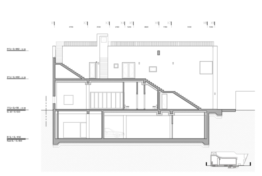 지하1층에는 선큰 마당을 가진 작은 임대공간을 제안했고, 1층은 전체를 임대공간으로 예측하여 계획했고, 2층과 옥상은 임대공간과 건축주의 공간을 구분하여 계획했다.