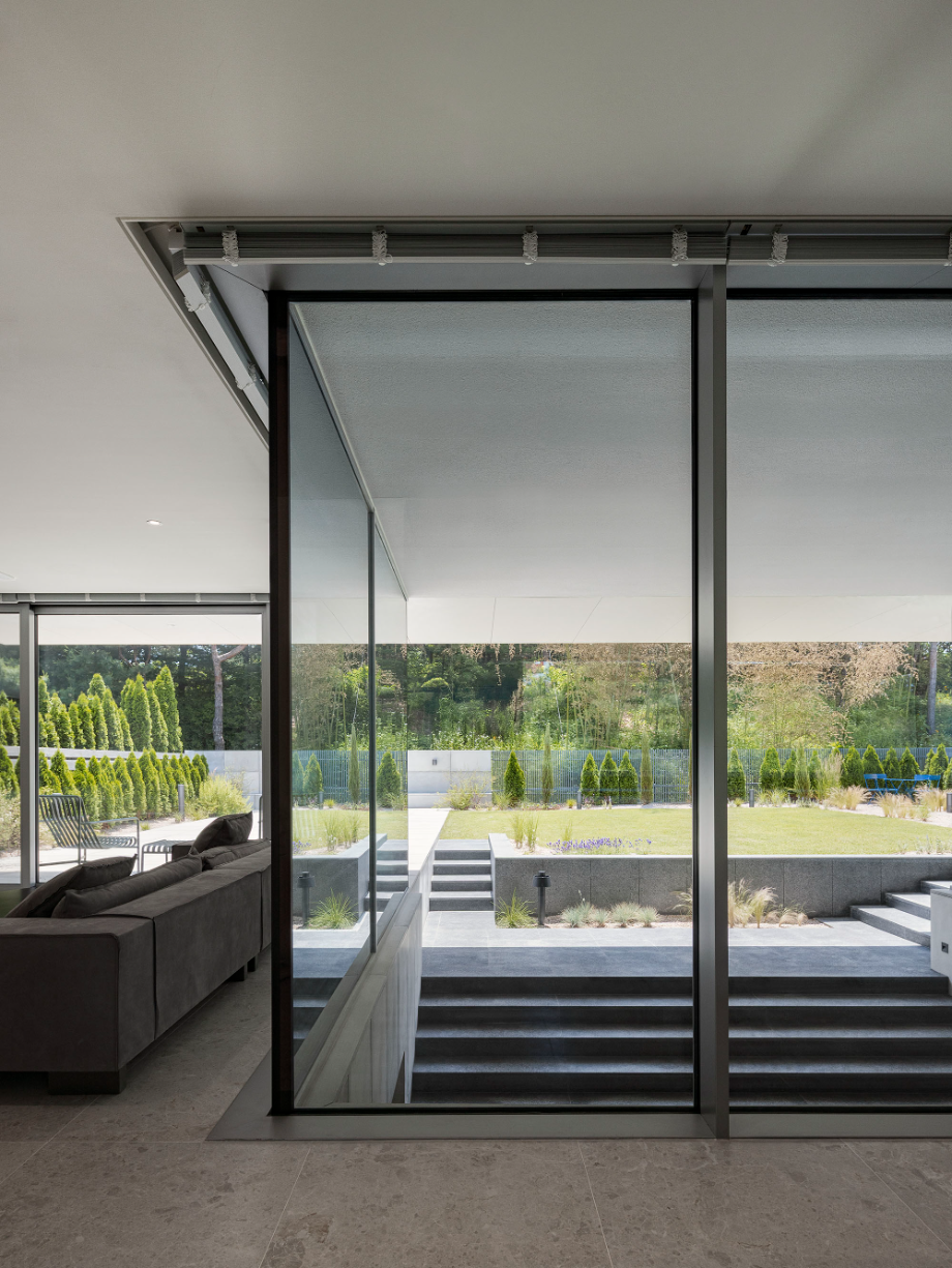 1층과 2층은 같은 숲을 바라보지만, 입면 구성의 방식에 따라 각기 다른 감도와 거리로 자연과 관계를 맺는다.