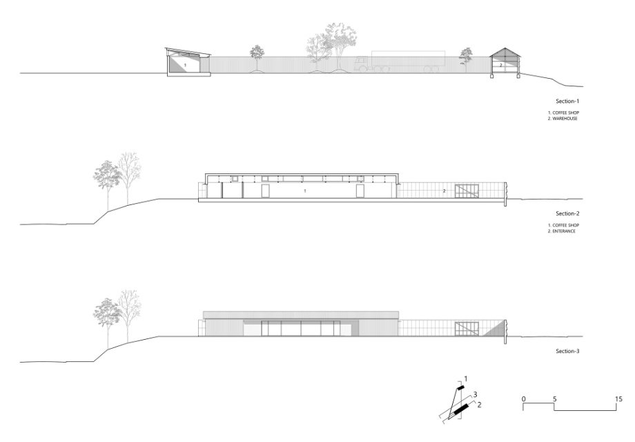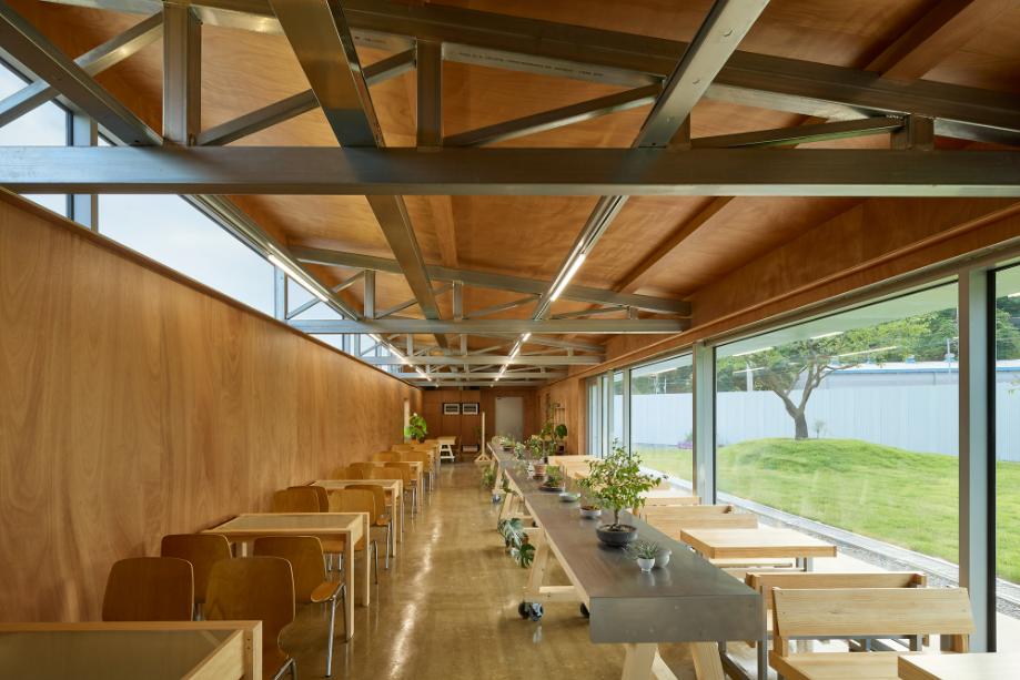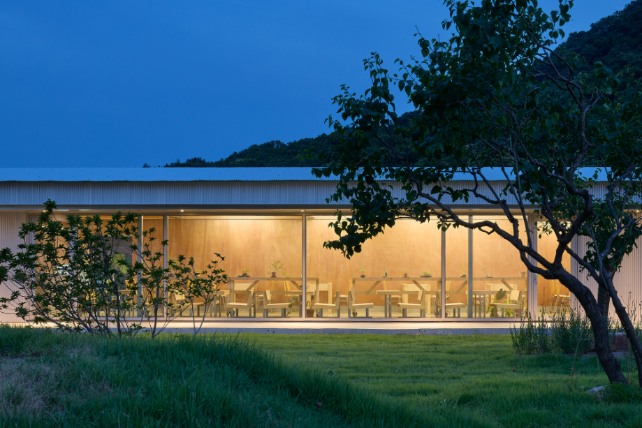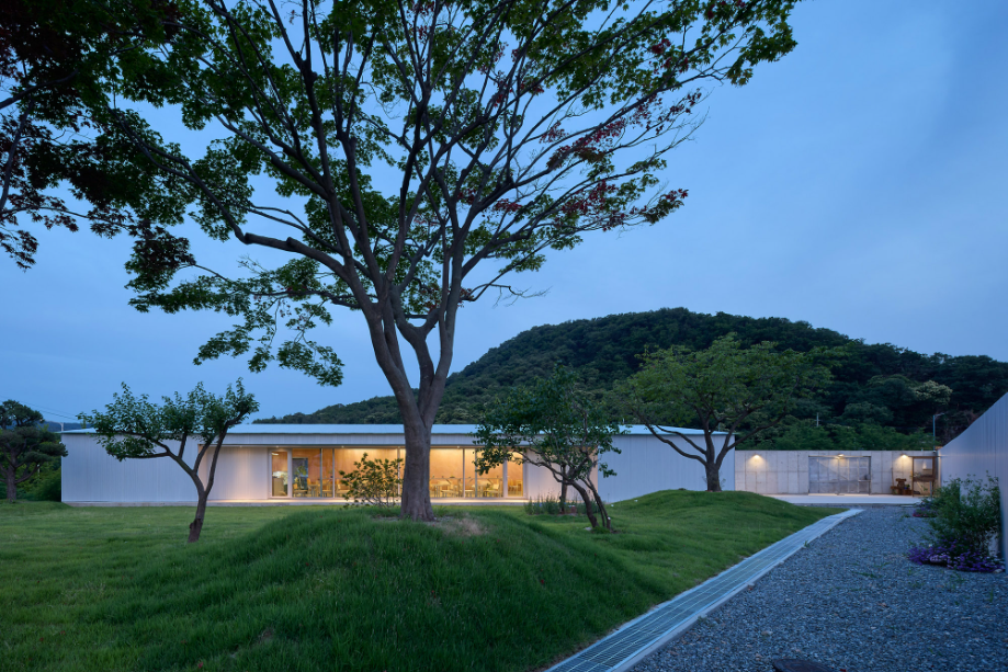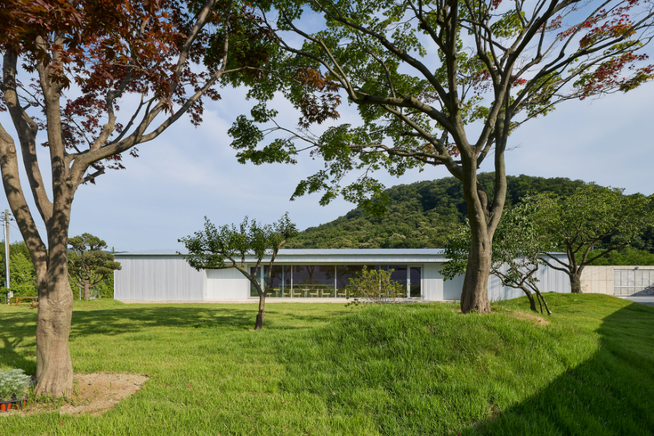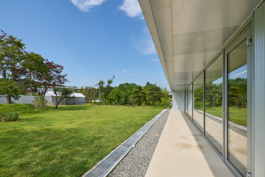 내부는 긴 창을 통해 외부 풍경을 끌어들이며 자연과 느슨한 시각적 관계를 맺는다. 건축은 배경으로 물러서서 자연풍경인 하늘과 바람, 나무를 공간의 일부로 담아낸다. 절제된 건물과 투명한 경계, 그리고 비워진 마당은 사람과 자연, 시간이 개입할 수 있는 공백을 남긴다. 공백의 공간은 비워있음으로해서 그 안에 의도치 않게 펼쳐지는 무수히 많은 행위들을 포용한다.