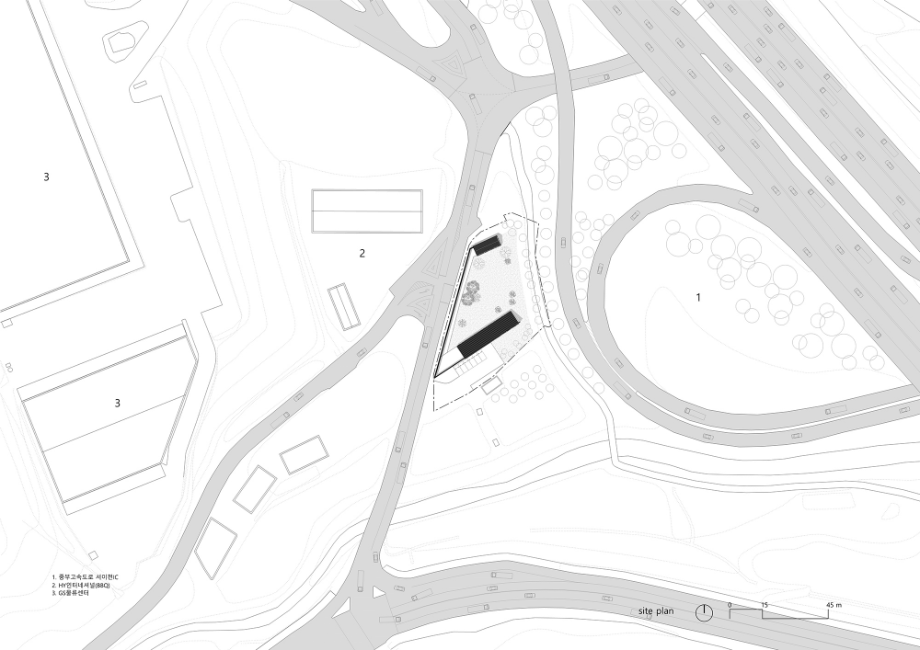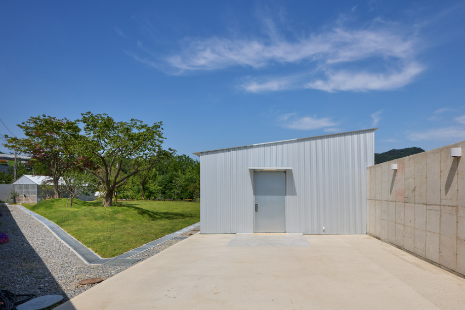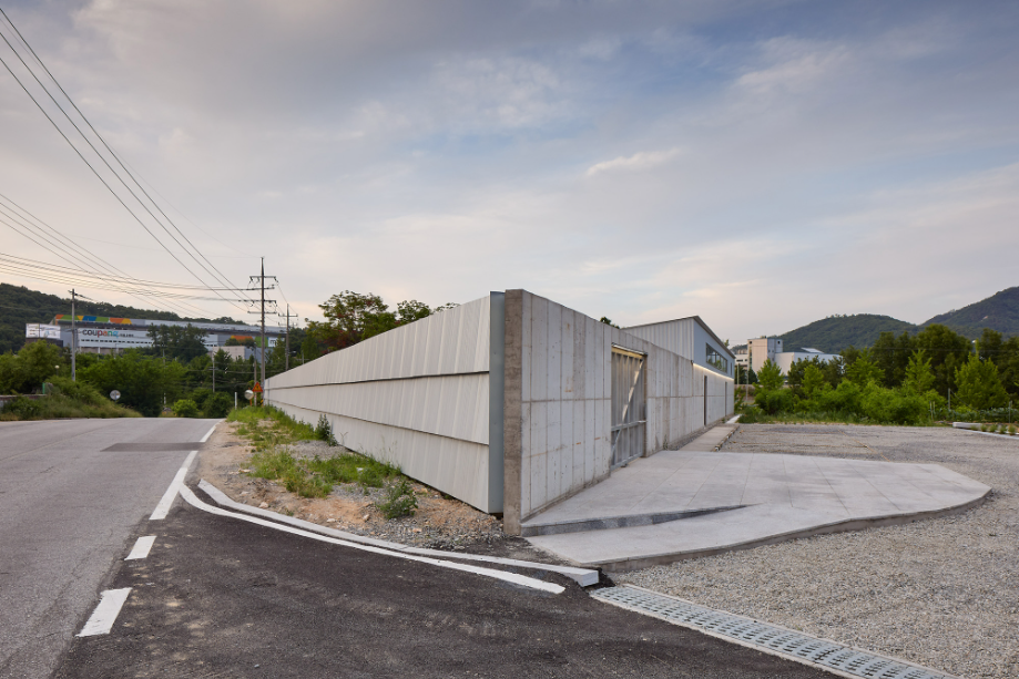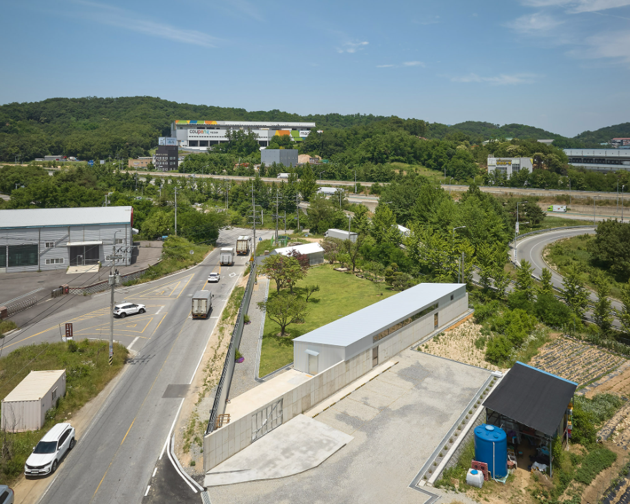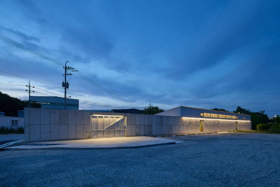 이 프로젝트는 결핍의 조건 속에서 시작됐다. 대지는 물류센터와 차량 흐름에 둘러싸여 있었고, 인적이 드물고 건조한 풍경만이 남아 있었다. 무엇보다도 제한된 예산 안에서 건물을 완성해야 했다. 설계는 무언가를 더하기보다 덜어내는 데 초점을 두었고, 비움을 통해 공간을 조직하고자 했다.