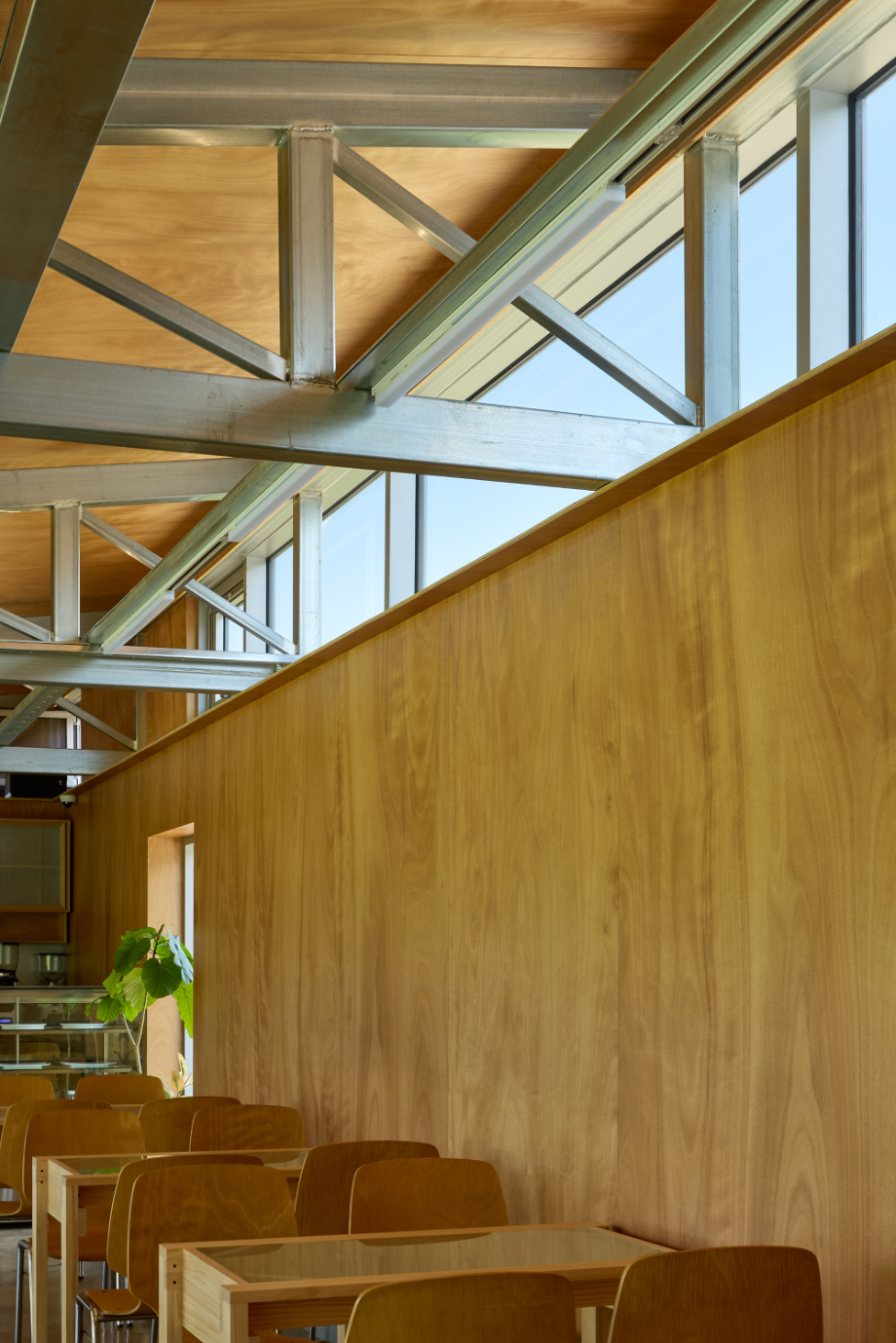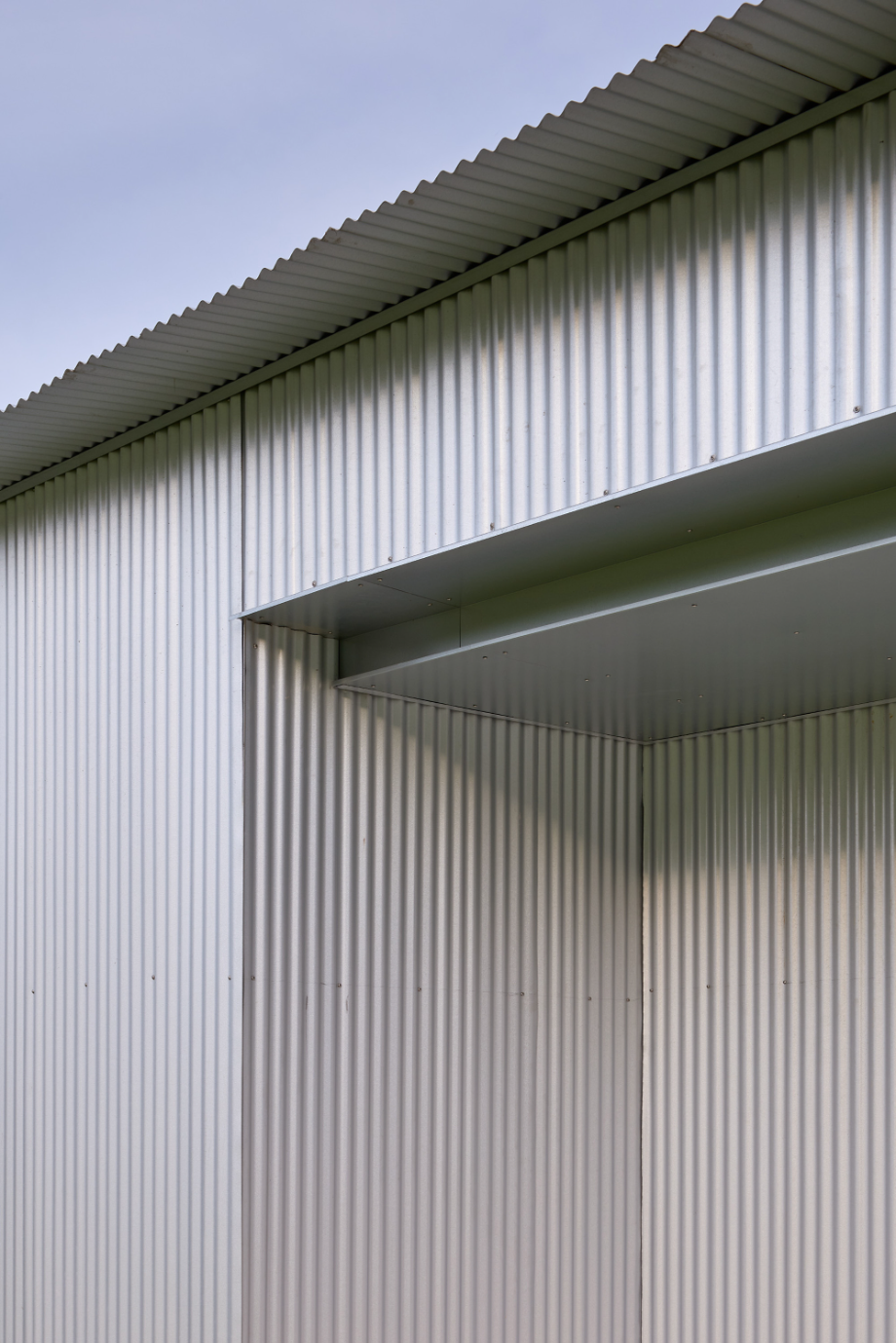 건축은 기능적 최소 단위로 구조화됐다. 콘크리트 벽 위에는 노출된 철골 트러스가 얹혀 있고, 콘크리트·아연도금 강판·합판 등 경제적인 재료들이 날것 그대로 사용됐다. 이는 비용을 줄이기 위한 선택이자 동시에 프로젝트가 취하는 태도이기도 하다. 구조와 마감은 분리되지 않고 하나로 작동하며, 결핍을 하나의 건축적 언어로서 응축한다.