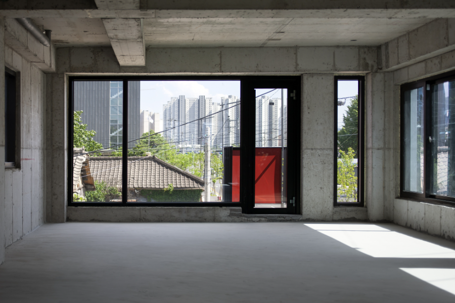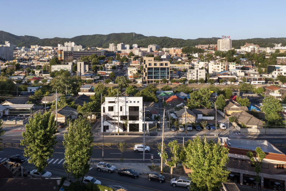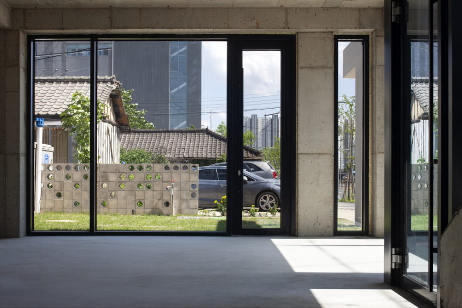 그런 장소에 새로 건물을 짓는 건물을 설계하는 일은 무척 의미가 있지만, 부담스럽기도 하다. 시간의 맥락과 기억의 맥락이 끊임없이 계획으로 파고든다. 집 지을 땅은 큰 길 이면으로는 오래된 동네의 흔적이 고스란히 남아있는 외곽에 위치한, 말하자면 동네의 껍질 같은 곳이다. 도로 맞은편에는 새로 거대한 주거 단지가 들어올 예정이고, 뒤편에는 100여 년의 역사적 시간을 담은 동네가 있는 시간적, 지리적 경계 지점에 자리잡게 된 것이다.