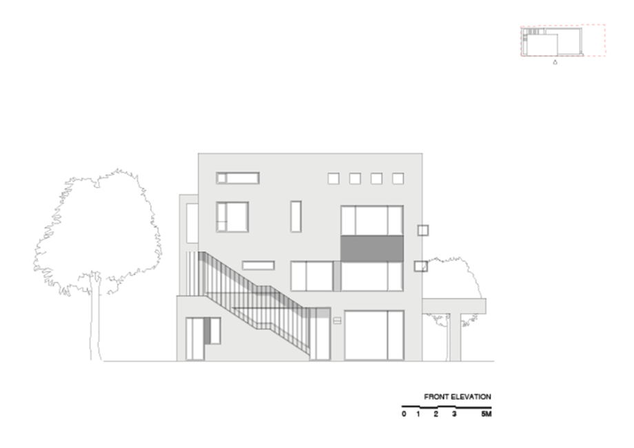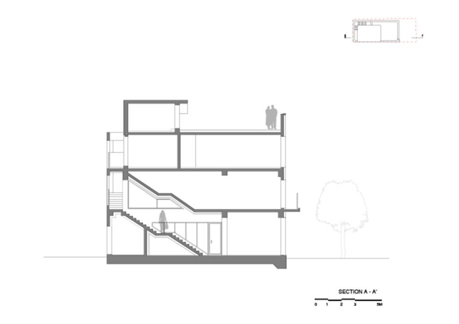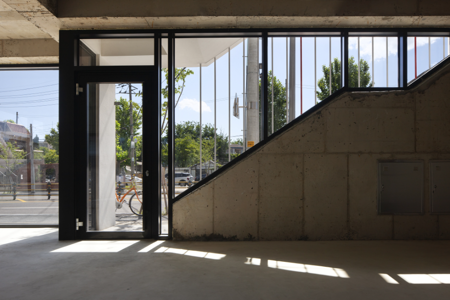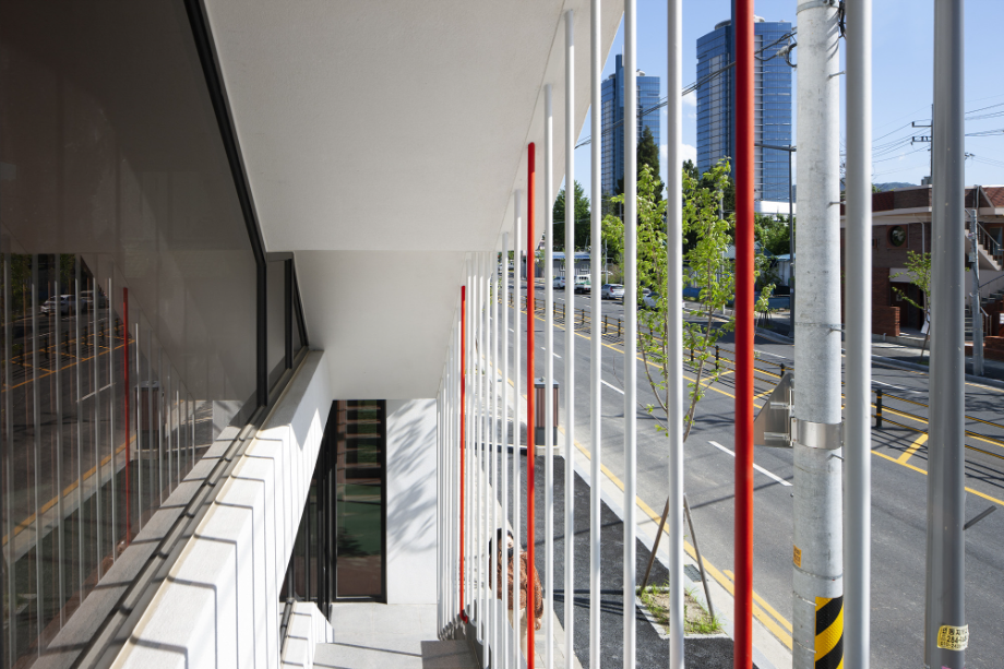 기존의 도시 문맥을 살리는 방법으로 전면에 건물로 들어가는 길을 만들었다. 각 층으로 진입하는 외부계단은 내부로 넣거나 눈에 띄지 않게 구석으로 돌려도 되지만, 이왕이면 오르내릴 때마다 주변의 풍경을 감상할 수 있도록 건물의 전면으로 당겨왔다. 계단은 건물의 옆구리를 파고들며 단순한 이동의 목적뿐만이 아니라, 입면을 좌우하는 중요한 디자인 요소가 됐다. 건물에 생동감을 불어넣는 옥외계단을 오르며 이용자들은 계속 다른 방향의 풍경을 만나게 되고 시선마다 과거와 현재가 혼재된 동네가 담기게 된다.