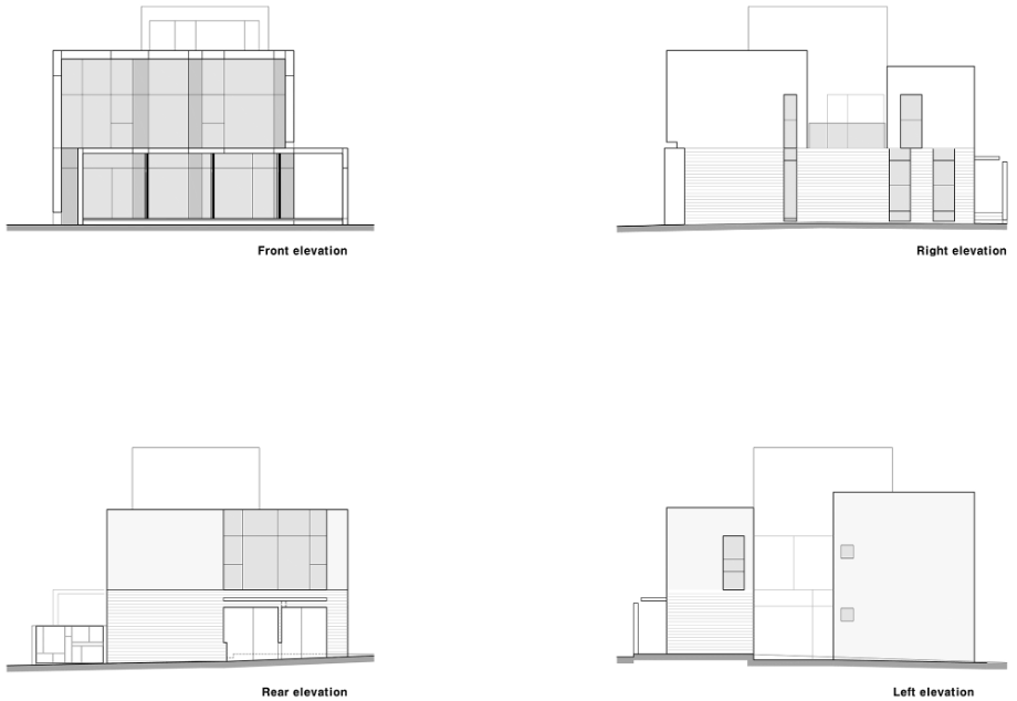 건물의 입면은 별도로 디자인을 하지 않고, 각각의 실에서 적정한 창문을 만드는 것, 자체로 건물의 표정을 갖는다. 다만, 도로 측인 북측은 창문의 설치를 최소로 하였다. 또한, 1층 입구와 현관이 도로 쪽에서 직접 노출되지 않도록 적절한 가벽을 만들어, 건물 입면의 표정을 만드는 요소가 되고 있다.