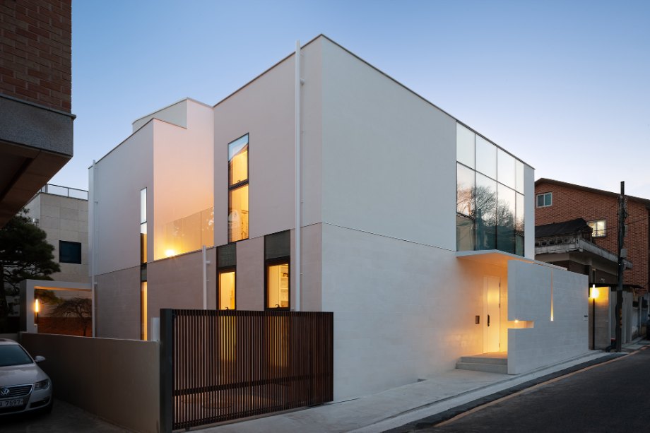 30년 전에 개발된, 오래된 주거단지에 위치한다. 대지의 북측에 도로가 있으며, 대지에 접한 도로는 서측에서 동측으로 경사가 있다. 대지의 형태는 남북쪽으로 약간 긴 형태의 정방형 형태이다. 도로를 제외한 3면에 기존 건물들이 있어서, 채광과 환기를 위해 중정을 만들어야 하는 것이 주요 고려사항이었다.