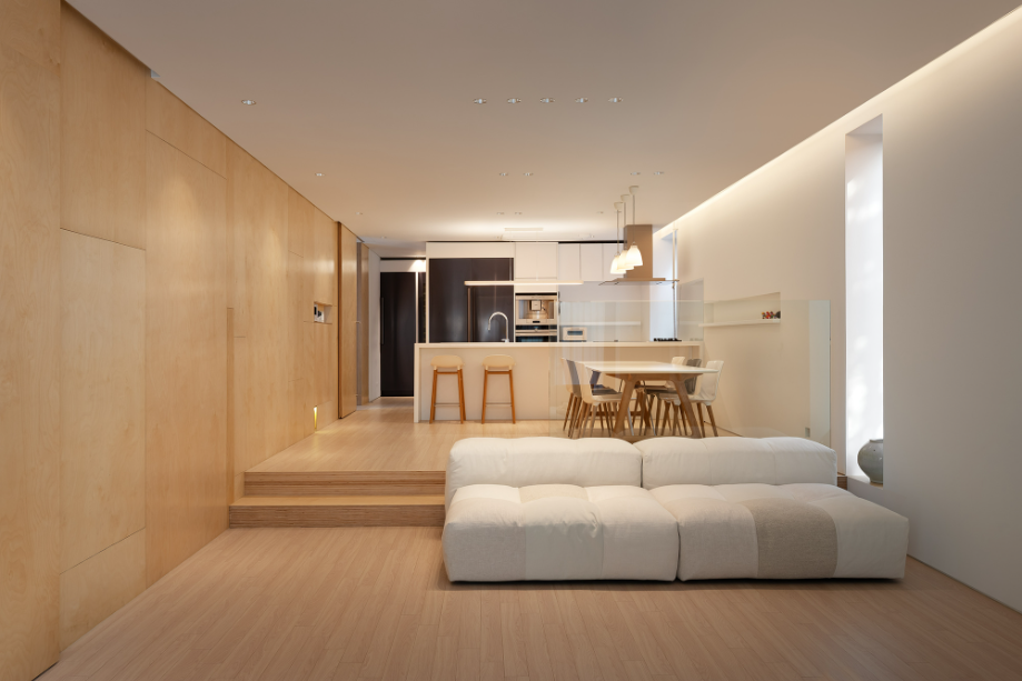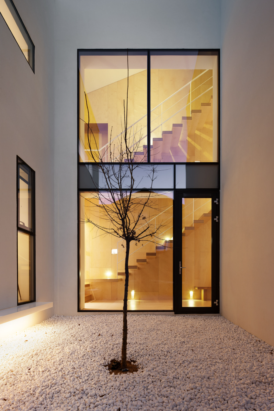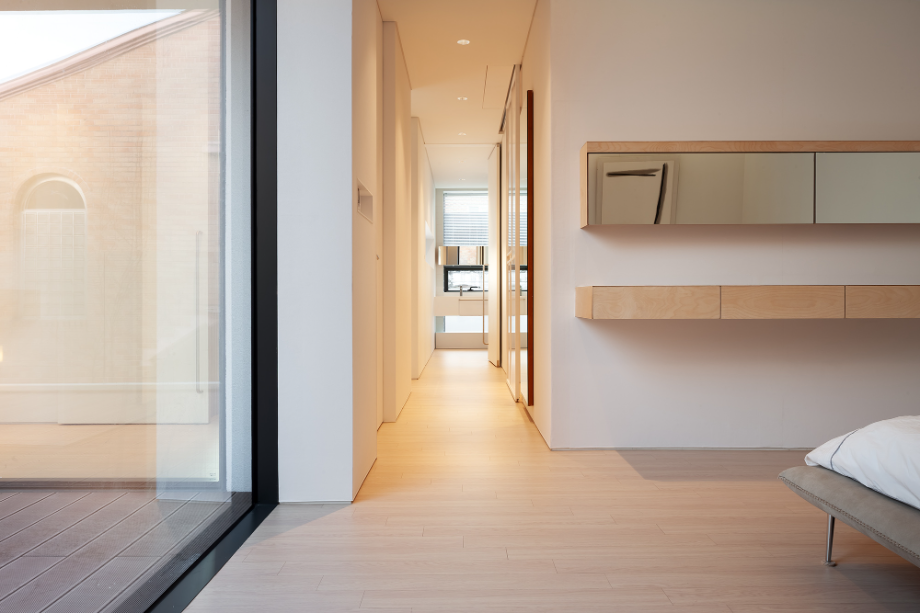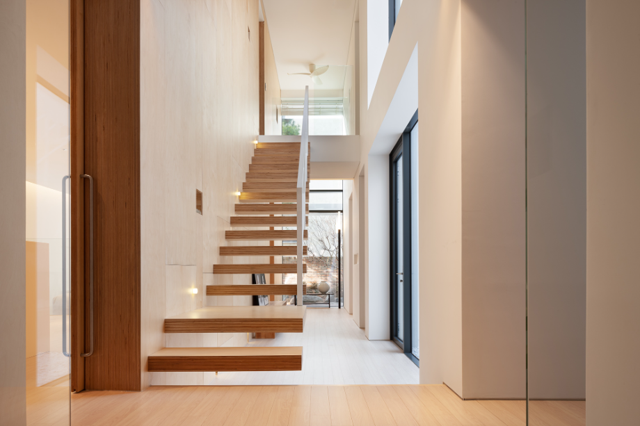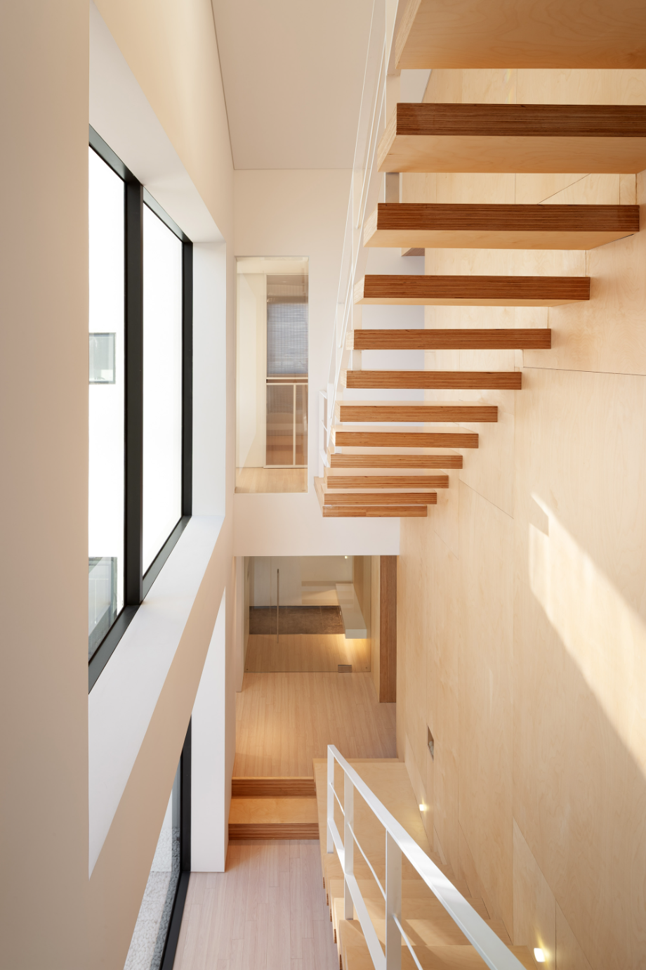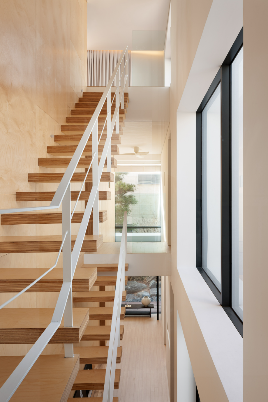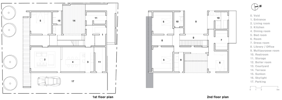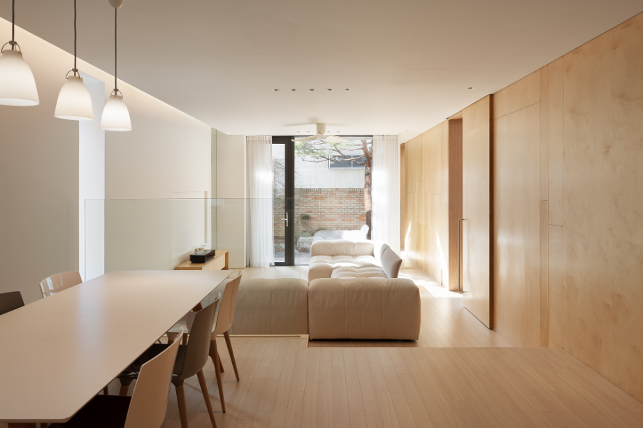 이 주택에는 3곳의 오픈 공간이 있다. 중정으로 사용되는 실외 2개 층 오픈 공간, 2층 안방 전면의 실외 오픈 공간, 내부의 모든 실을 연결하는 실내의 3개 층 오픈 공간이 그것이다. 실외의 오픈 공간은 앞에서 언급했던 자연광이 모든 실내로 유입되도록 하고, 환기를 위한 장치이고, 실외 오픈 공간은 모든 실을 연결한다. 3곳의 오픈 공간은 각각 독립적으로 작용하는 것이 아니고, 모두 서로 인접하고 있어서 매우 다양한 시각적인 공간적인 효과를 공유할 수 있다.