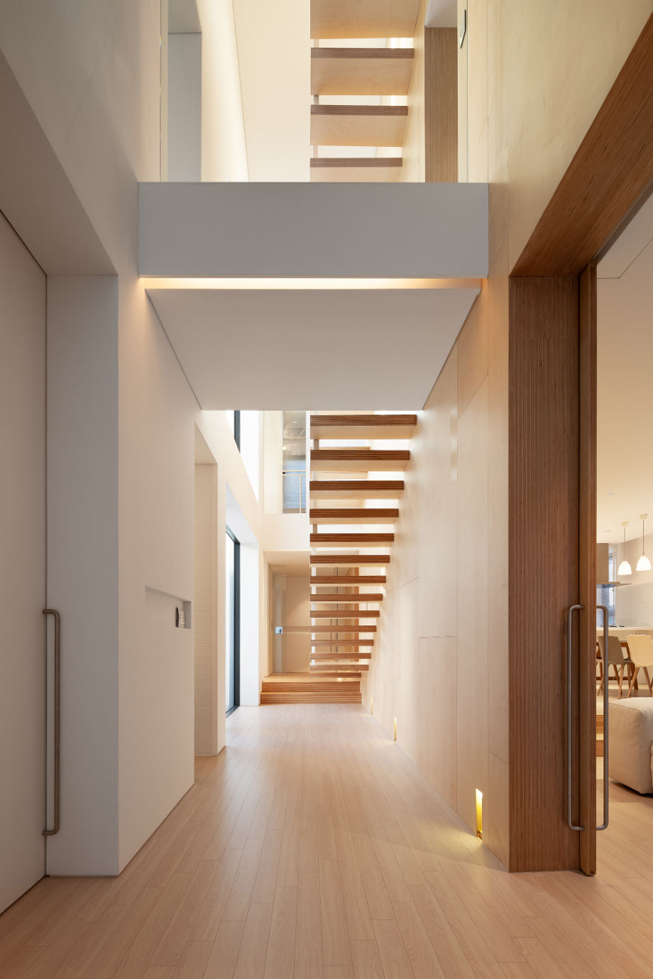 주택의 특성상, 간접조명을 최대한 이용하고 있다. 실내 천장뿐 아니라, 실내외의 가구나 선반, 계단 등에 간접조명을 최대한 계획했다. 간접조명만으로 생활이 충분하며, 글씨가 작은 책을 읽는 경우를 대비하여 다운라이트를 적절히 배치하여, 상황에 맞도록 조도를 조절할 수 있다.