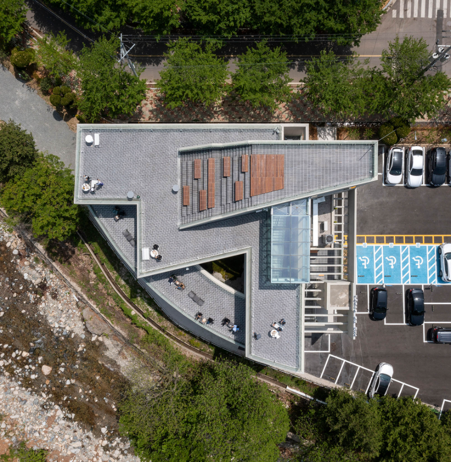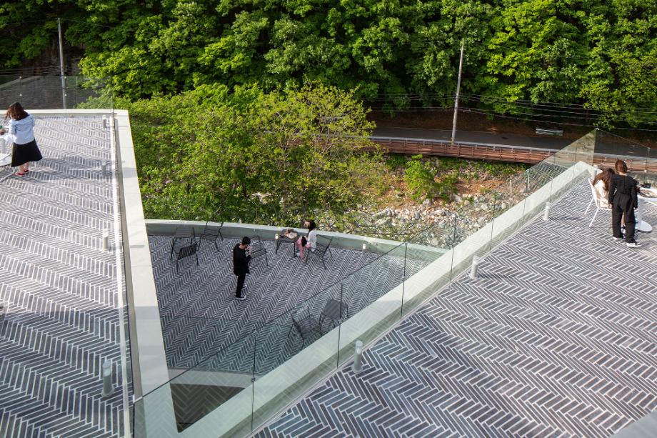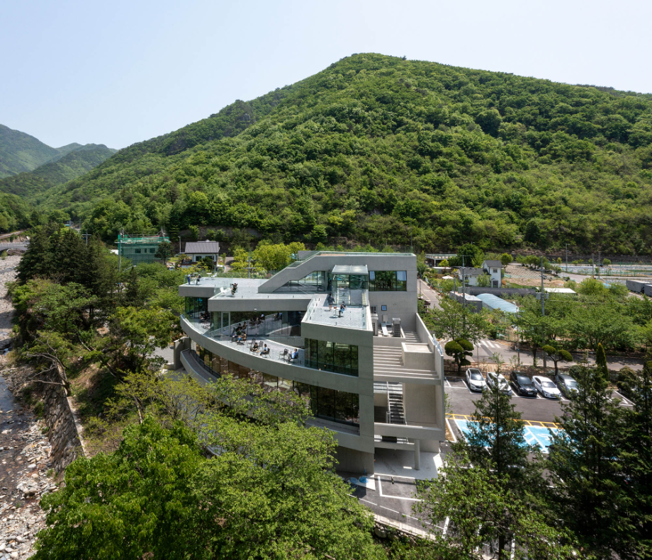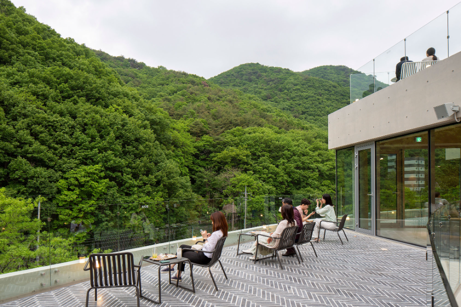 커피 한잔이 갖는 미각적, 후각적 경험에 산을 조망하는 시각적 경험이 더해지고, 바람이 나뭇잎을 스치고 지나는 소리와 계곡의 물소리가 만들어내는 청각적 경험이 더해져서 이곳에서만 느낄 수 있는 장소성을 극대화시키는 건축물이 되고자 했다.◼︎