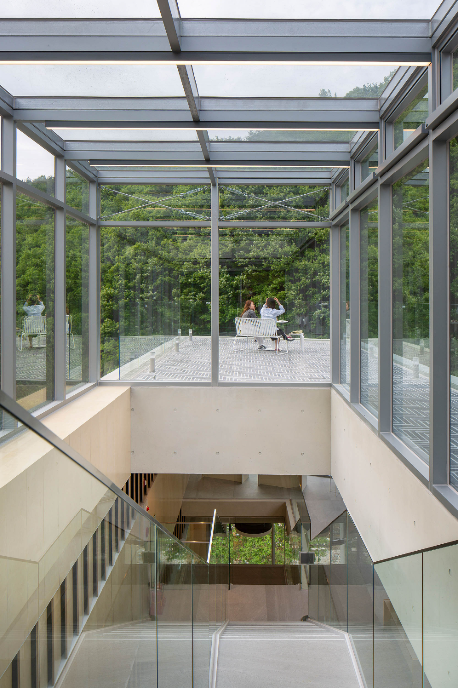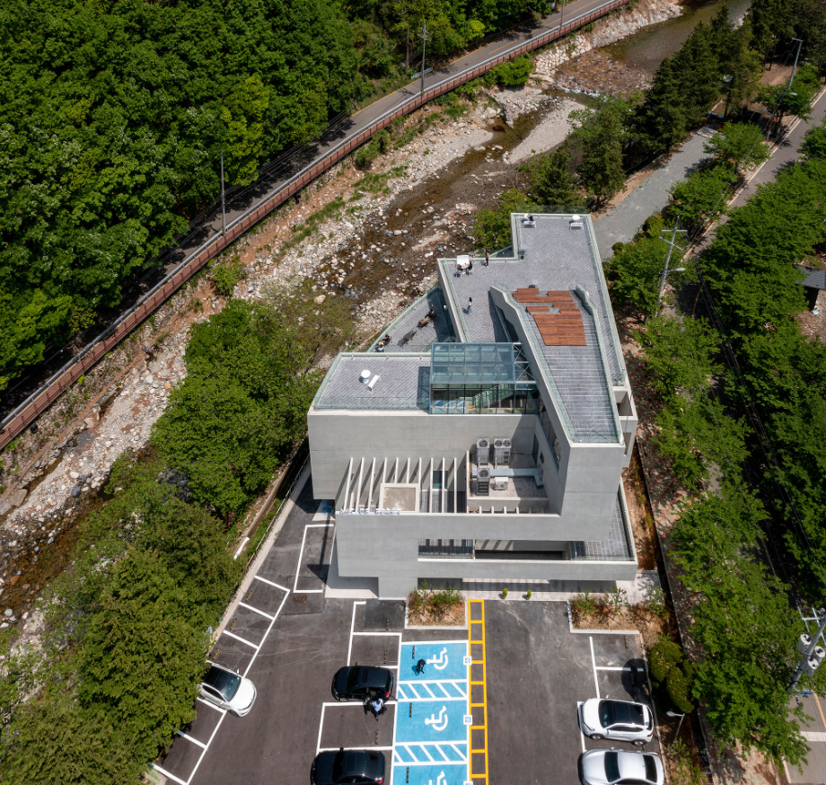 마지막 층은 천성산을 바라보며 깊어지는 계곡의 기운을 온전히 경험하는 열린 외부공간을 제공하는 것이었다.