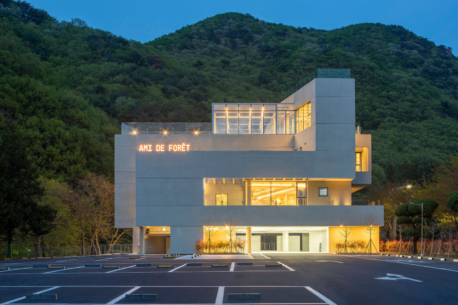 '아미 드 포레'는 자연을 접한 유원지 인근에서 흔히 볼 수 있는 일회성 소비 공간으로서의 카페가 아닌, 방문객들에게 자연의 평온함을 즐기면서, 마음의 휴식을 가질 수 있는 공간이 되고자 의도한 카페이다.