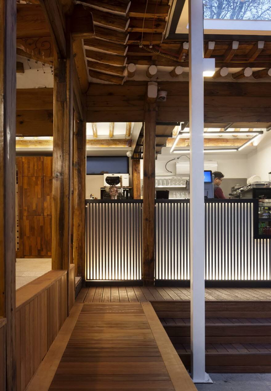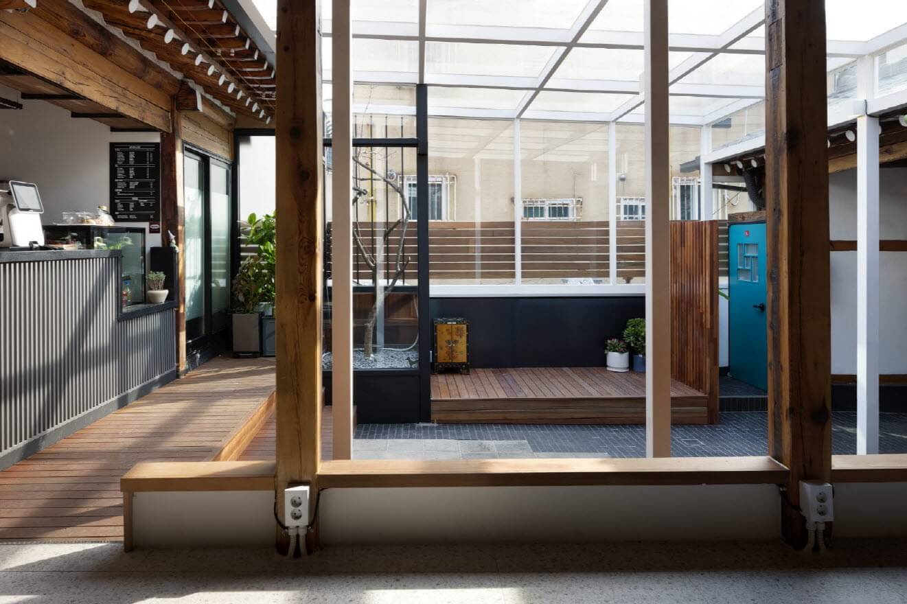 성북동에서도 대로변에서 한참 들어간 주택가 골목이라 유입인구가 많지 않고 그 일대의 도시계획 상의 규제들이 변하는 시점이라, 상가 건물을 새로 짓는 것에 대한 경제적 부담도 있을 터였다. 물론 건축가로서는 집을 고치는 일보다 철거 후 신축이 더 쉬운 일인 건 사실이다. 다만 방금까지 사람들이 잘 손보며 살아온 덕에 한옥의 뼈대나 형태가 무척 안정적이라 바로 허물기는 아깝다는 생각이 들었다. 일단 한옥을 고쳐서 카페로 쓰다가 어느 정도 분위기가 무르익을 때 신축을 하기로 했다.