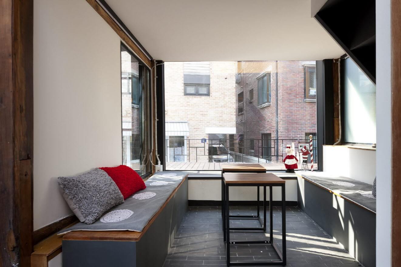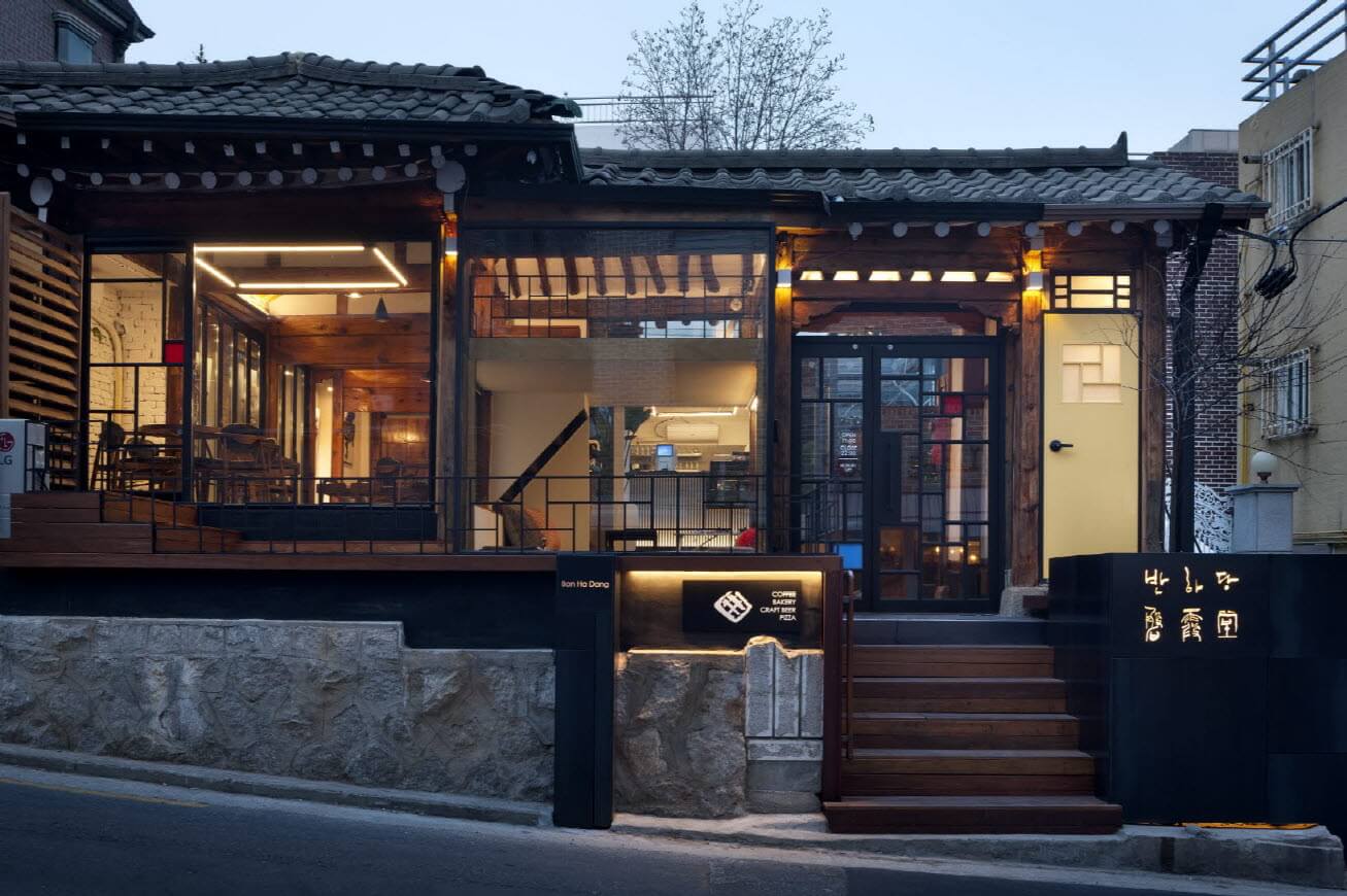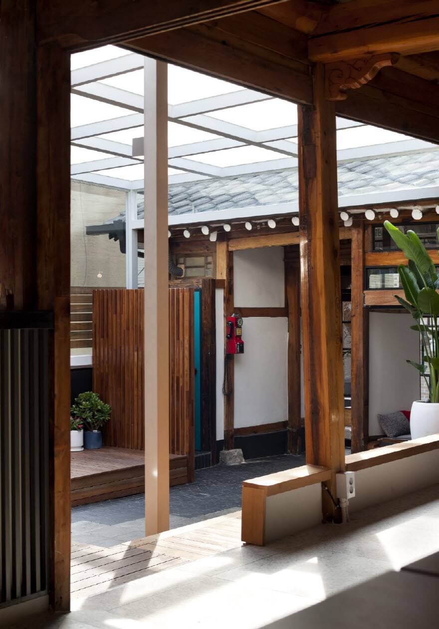 이전 집 주인은 마당을 잘 가꾼 대신 담장과 집 사이는 모두 이어서 증축을 한 상황이라 집의 외향은 사실 볼품없었다. 도시가스관이 타고 지나가던 도로 쪽의 벽을 허물고 집의 원래 뼈대를 살리고 다른 벽을 뜯어낸 흔적들도 남겨두면서 정리했다. 어둑한 골목이 이 집에서 나오는 불빛으로 환해지도록 유리로 마감해서, 예전에는 밖에서는 알 수 없었던 한옥의 구조가 지나가는 사람들에게 시원하게 들여다보인다.