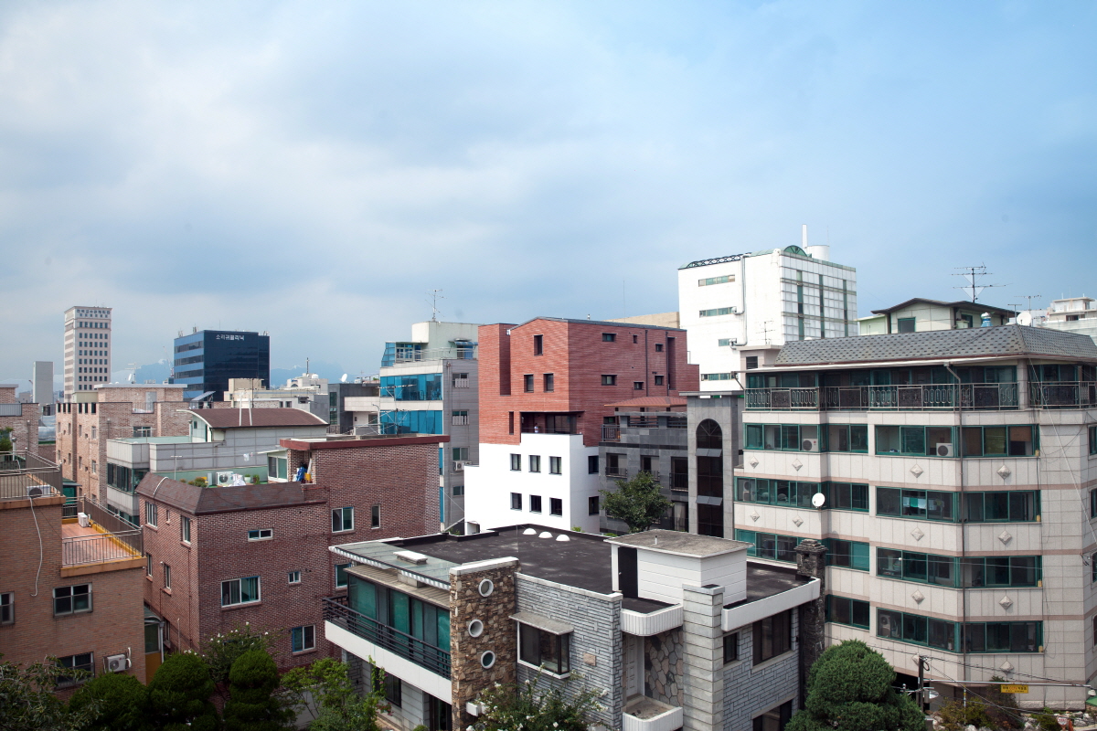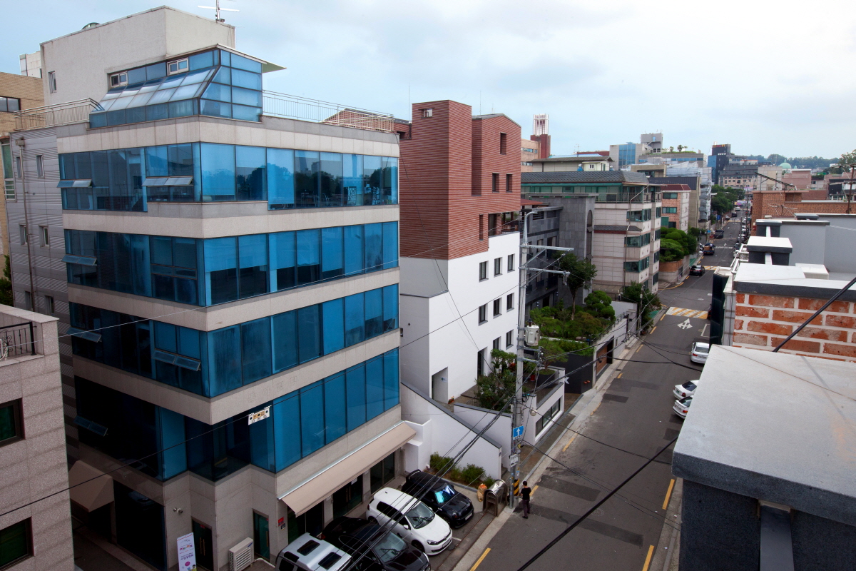 하늘집'은 가족 3대를 위한 주택과 사무실, 근린생활시설이 들어서는 소규모 복합건물이다. 근처에 어린이 대공원이 있는 한적한 주거지 골목에 위치한 하늘집은 가로에 면한 상업시설과 3개 층의 임대용 오피스, 3개 층의 주택으로 이루어져 있다. 건축주는 2명의 자녀를 둔 부부로 아버님, 어머님을 모시고 한 집에서 살기 위해 집을 짓고자 했다. 원래 이 땅에는 부모님이 오랫동안 사시던 단독주택이 있었는데, 이를 3대가 함께 살 수 있는 집과 근린생활시설이 결합된 건물로 신축하기를 원했다. 땅이 위치한 동네는 반듯하게 나누어진 평평한 필지에 마당이 있는 단독주택이 들어선 조용한 주택가였다. 다만 최근에 단독주택을 허물고 임대용 주거건물을 신축하는 공사가 곳곳에 벌어지면서 골목의 평화롭던 모습이 조금씩 바뀌고 있는 상황이었다.