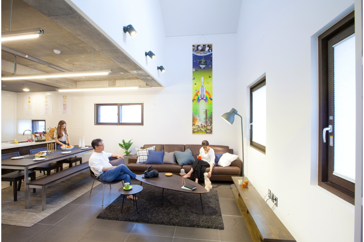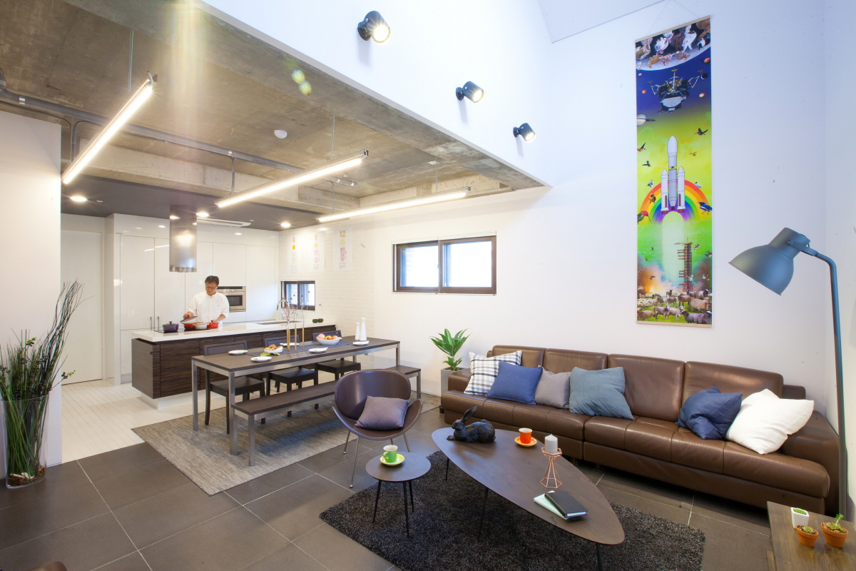 가로변에는 꽃가게 같은 작은 상업시설이 들어갈 수 있는 공간을 만들어 골목에 활기를 부여하고, 임대인이 자연스럽게 건물의 입구에 조명을 밝히고 건물을 지키는 역할을 하도록 했다. 업무시설이 들어설 임대층에는 각 층마다 다른 방향을 향하는 테라스를 두어, 쉬고 일하는 내외부 공간이 연결되도록 계획했다. 능동 하늘집은 대가족을 위한 삶의 공간과 임대인의 업무 공간이 위 아래로 결합된 집이다. 업무공간에서 일하는 사람들과 단독주택에 사는 대가족이 독립적이면서도 서로 시선을 주고받으며 공존하는 건물의 유형을 제안하였다. ■