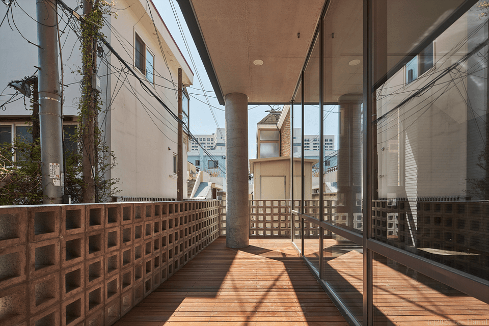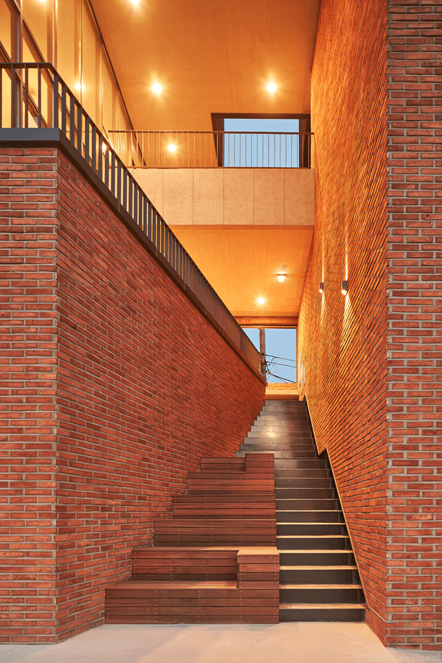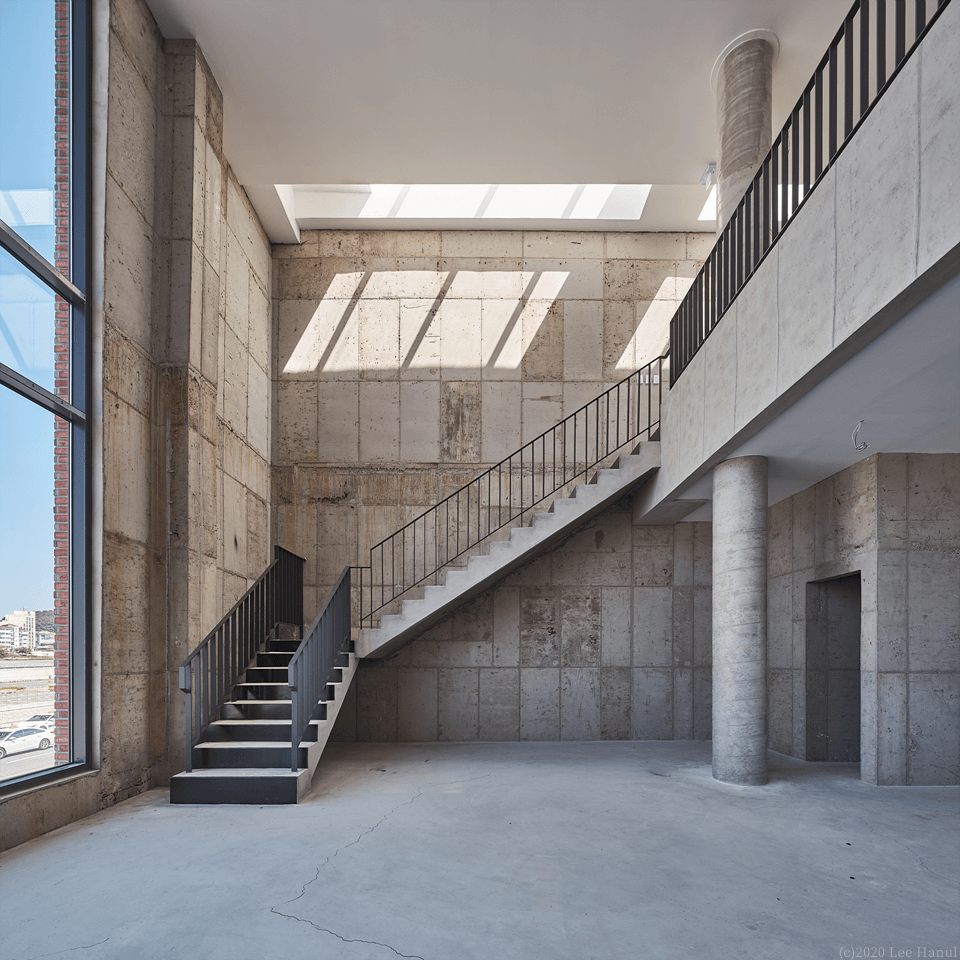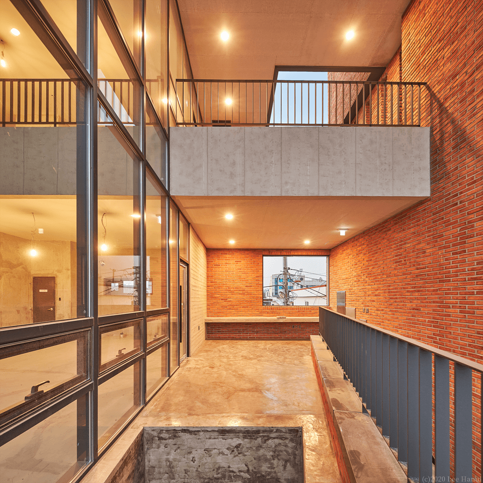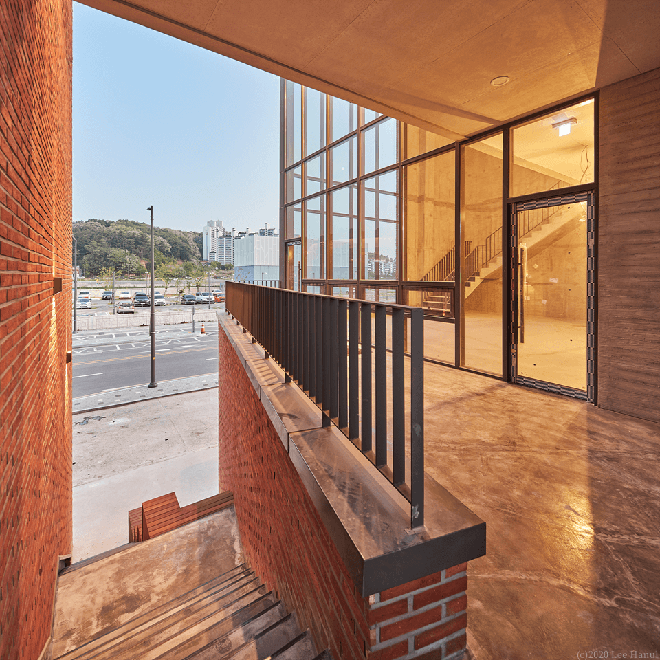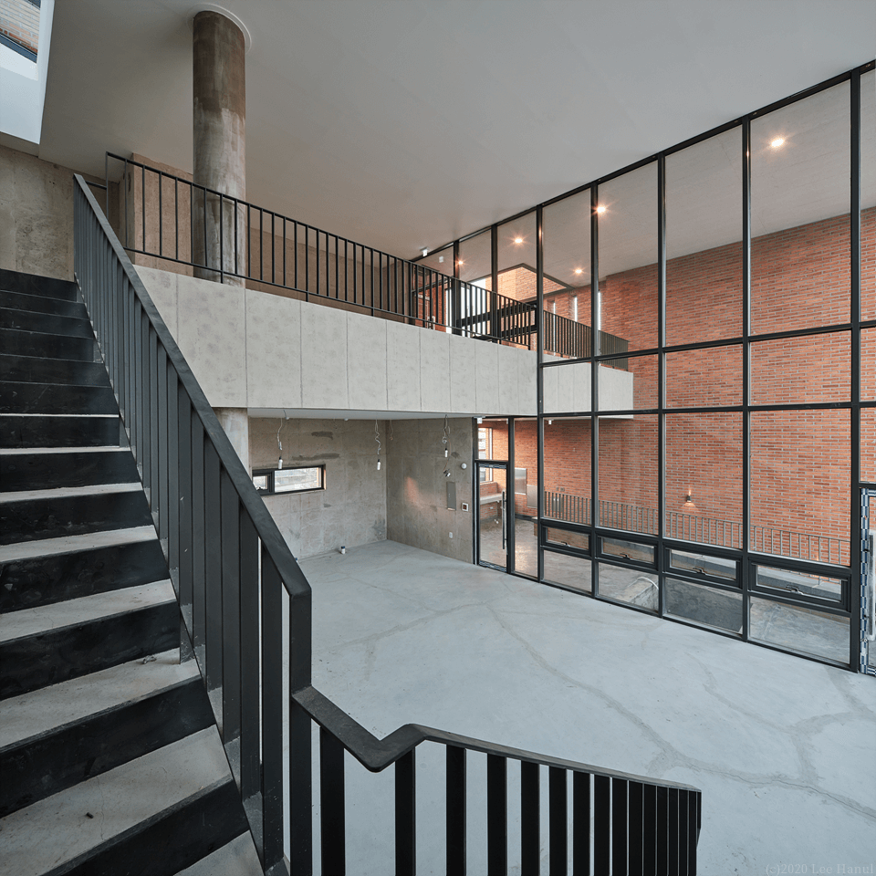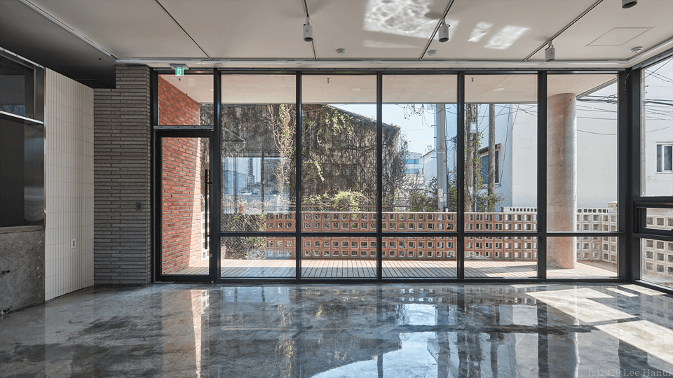 건물은 길에서 접근하면서 계단으로 이어진다. 여기서 계단은 중요한 공동적 요소가 되고 있다. 계단과 함께 3층까지 비워진 보이드 공간은 건물 사용자와 풍경이 중첩되는 경험이 된다. 또한 보이드 공간은 내부와 외부를 투명한 유리로만 구분되어 안과 밖의 중첩된 공간경험도 같이 준다. 사적 영역인 건물이지만 보이드는 익명의 사람들과 공유되는 공동적 여백으로 도시가로에 새로운 경험을 주는 장치가 되고 있다.