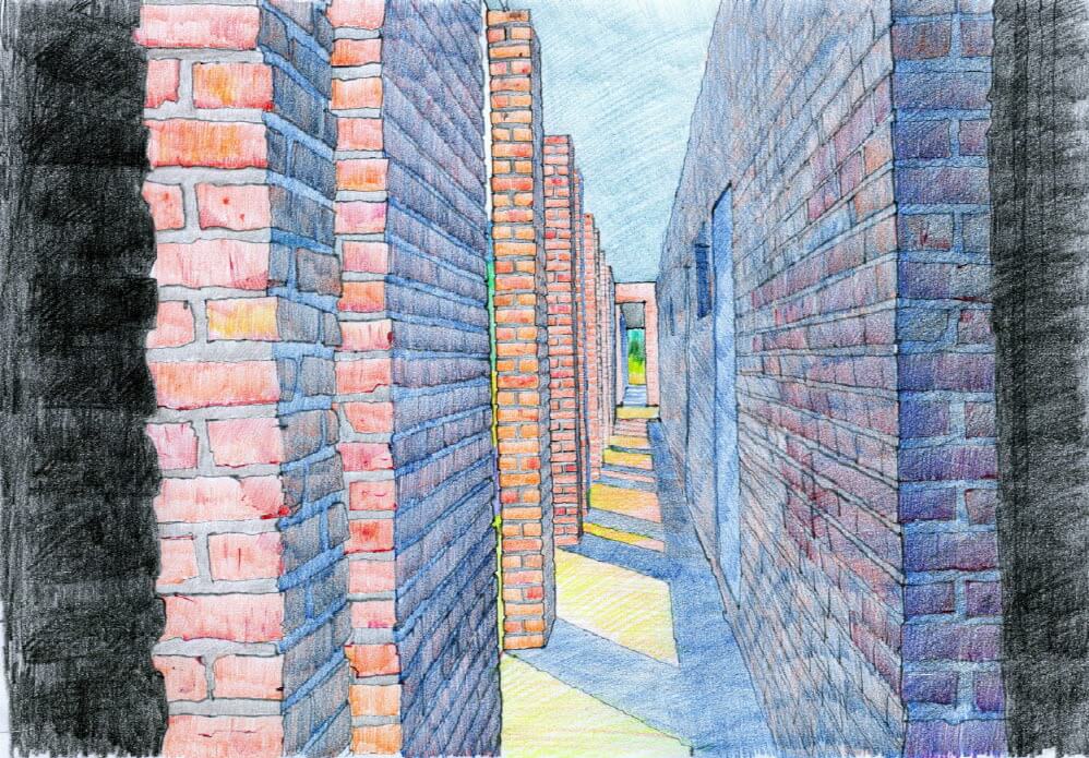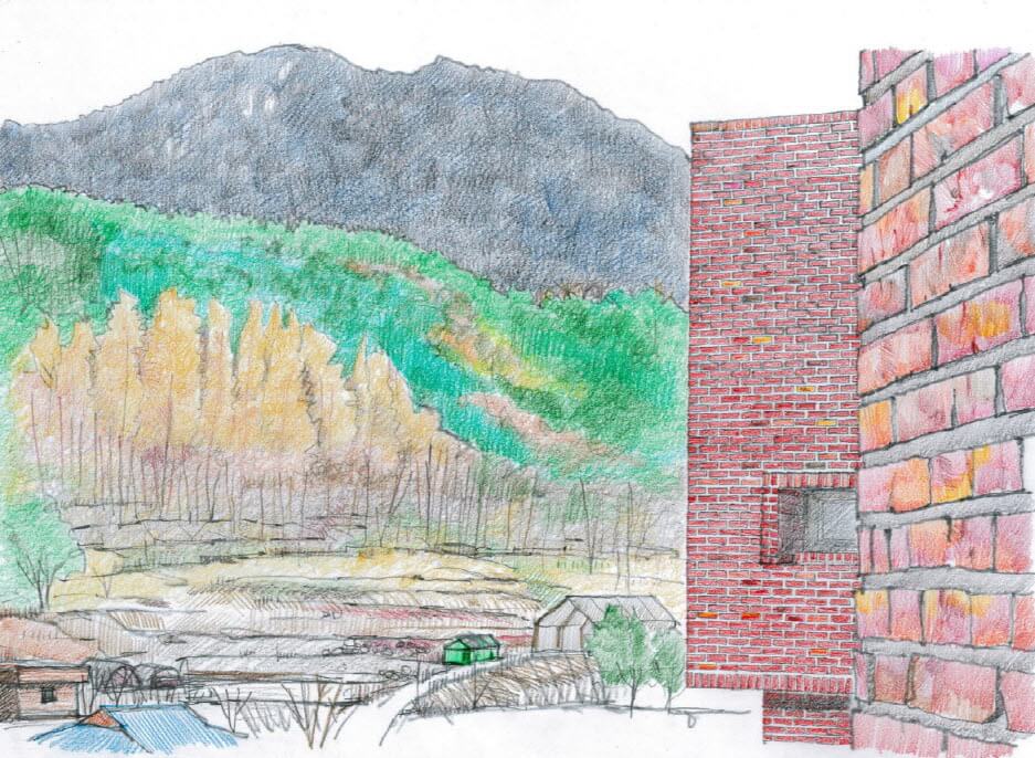 1년 동안의 설계기간을 거쳐 공사를 시작했고, 뼈대를 올리고 벽돌을 외부에 쌓고 바닥에 벽돌을 깔아서 무려 30만장의 벽돌로 공간을 완성했다. 공사 역시 1년이 걸렸다. 내내 즐거운 마음으로 몇 가지 어려운 문제를 넘어가며 땅을 다듬고 집을 올리고 나무를 심었다.
