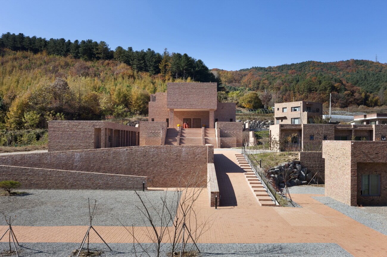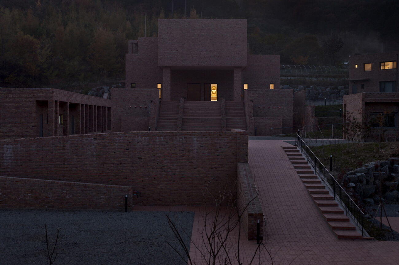 그것은 무척 오래된 것이면서 무척 혁신적인 접근이었다. 그런 점에서 기원정사의 유적을 상징하는 벽돌은 아주 적합한 재료였다. 기존의 대부분의 사찰처럼 한옥으로 짓지 않고 콘크리트 구조로 뼈대를 만들고 벽돌로 옷을 입혔다. 대신 기존 가람(伽藍] 배치의 방식을 고려해 일주문을 지나 안으로 향하는 길은 직선으로 곧장 가지 않고 가면서 세 번 꺾어 들어가게 했고, 대지의 원래의 높낮이를 이용해 세 개의 단을 조성하여 순서대로 종무소와 꾸띠, 요사채, 법당 등 위계에 맞게 건물을 올려놓았다.