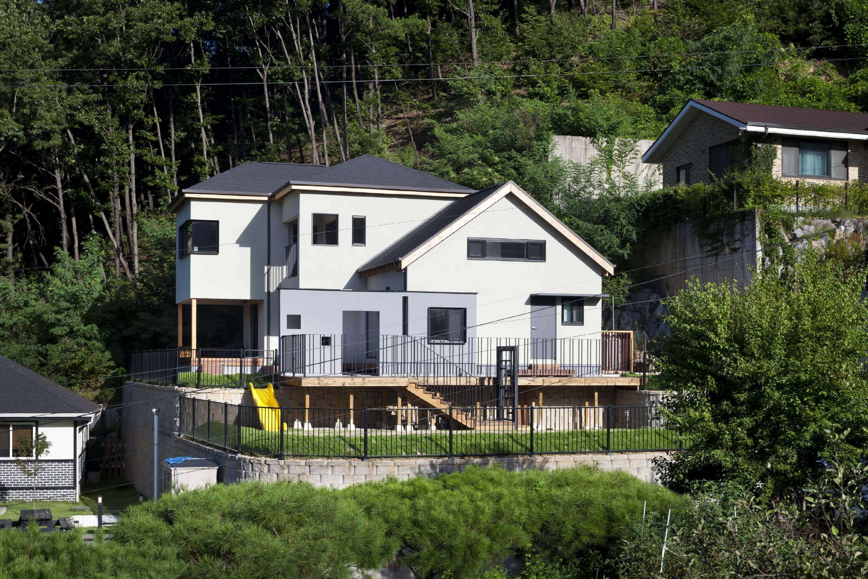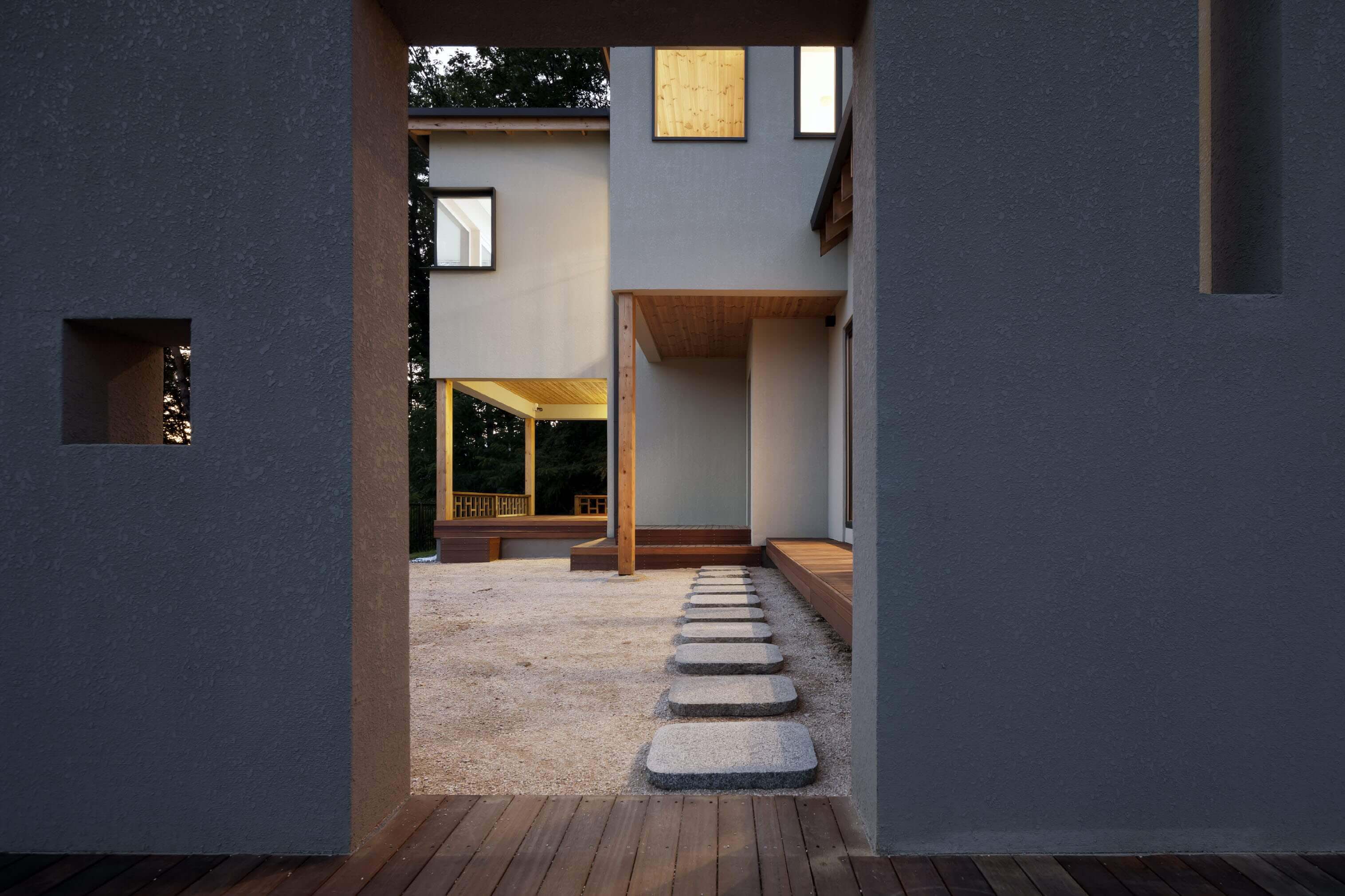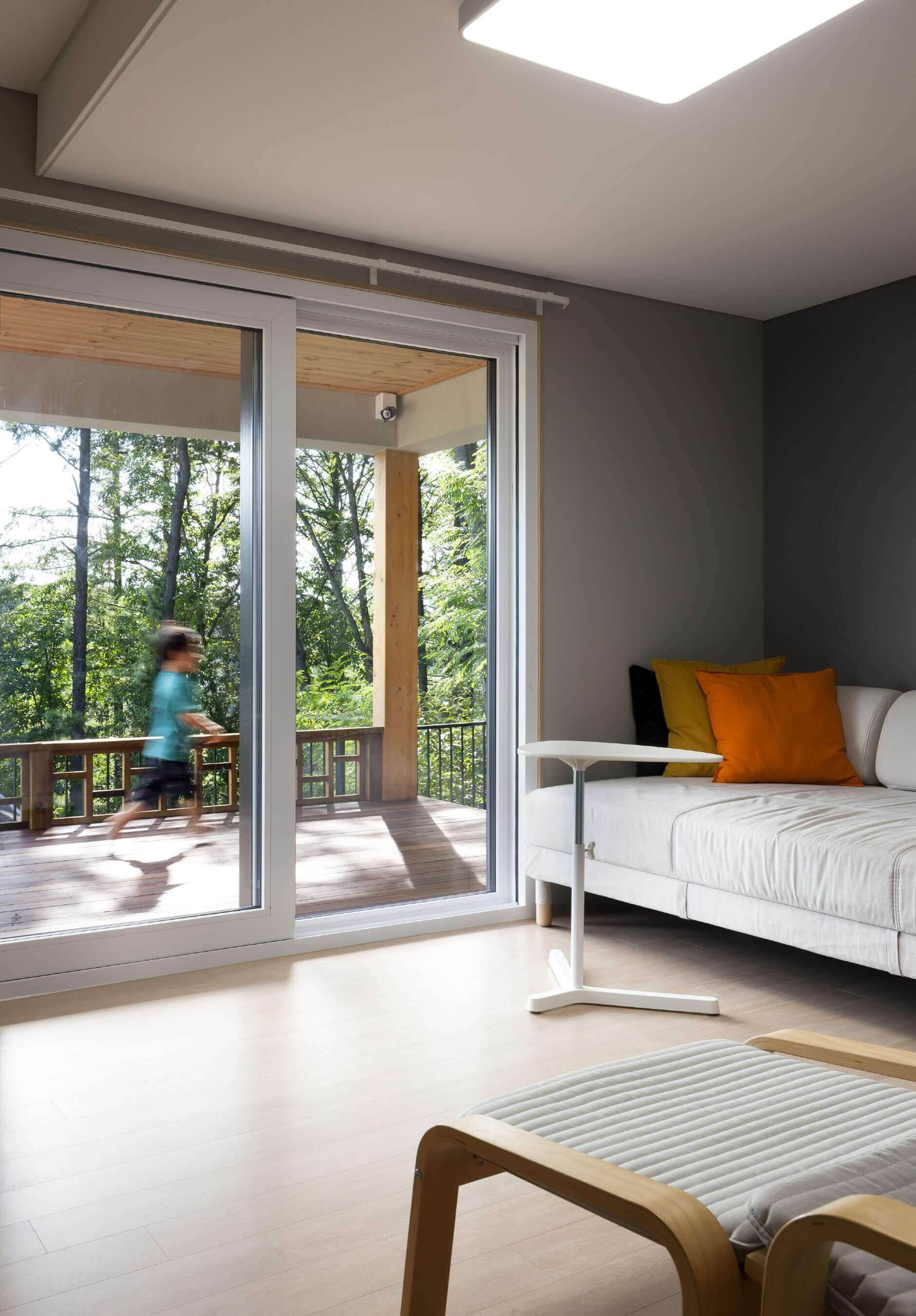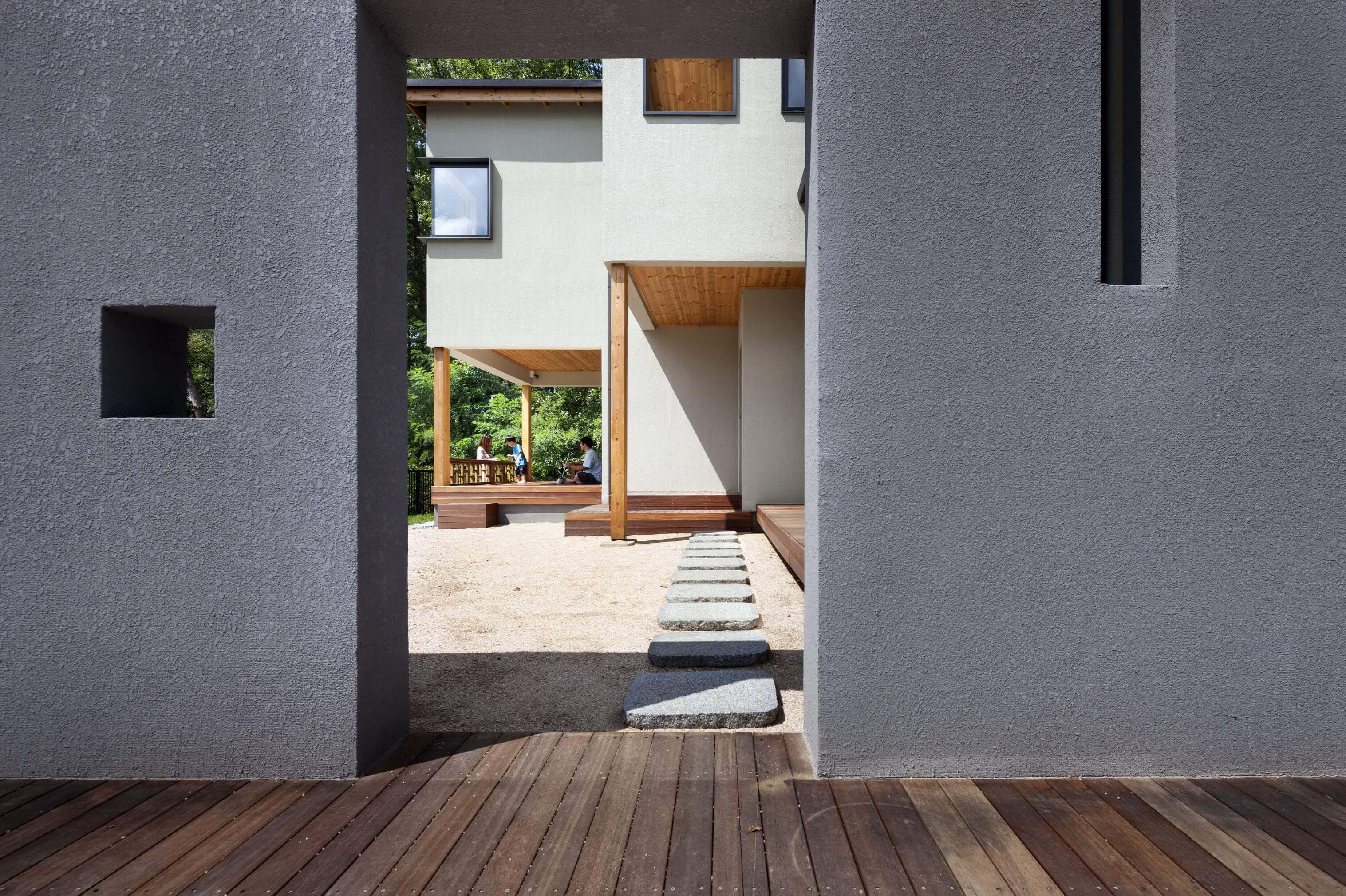 그런 외부의 문제와 더불어, 현대사회에서는 가족 내부의 문제 또한 생각해보아야 한다. 나와는 다른 존재가 함께 살기 때문에, 각자의 개성이 충돌할 때 문제가 시작된다. 예측할 수 없는 그런 변화에 대한 막연한 두려움으로부터도 안전한 집을 과연 만들 수 있을까? 우리는 가장 먼저 집 주위로 여러 개의 겹을 만들어, 그것이 실제적인 담이 되기도 하고 심리적인 안정감을 줄 수도 있도록 했다. 그리고 그 안에 가족을 위한 각각의 공간을 구성했다.