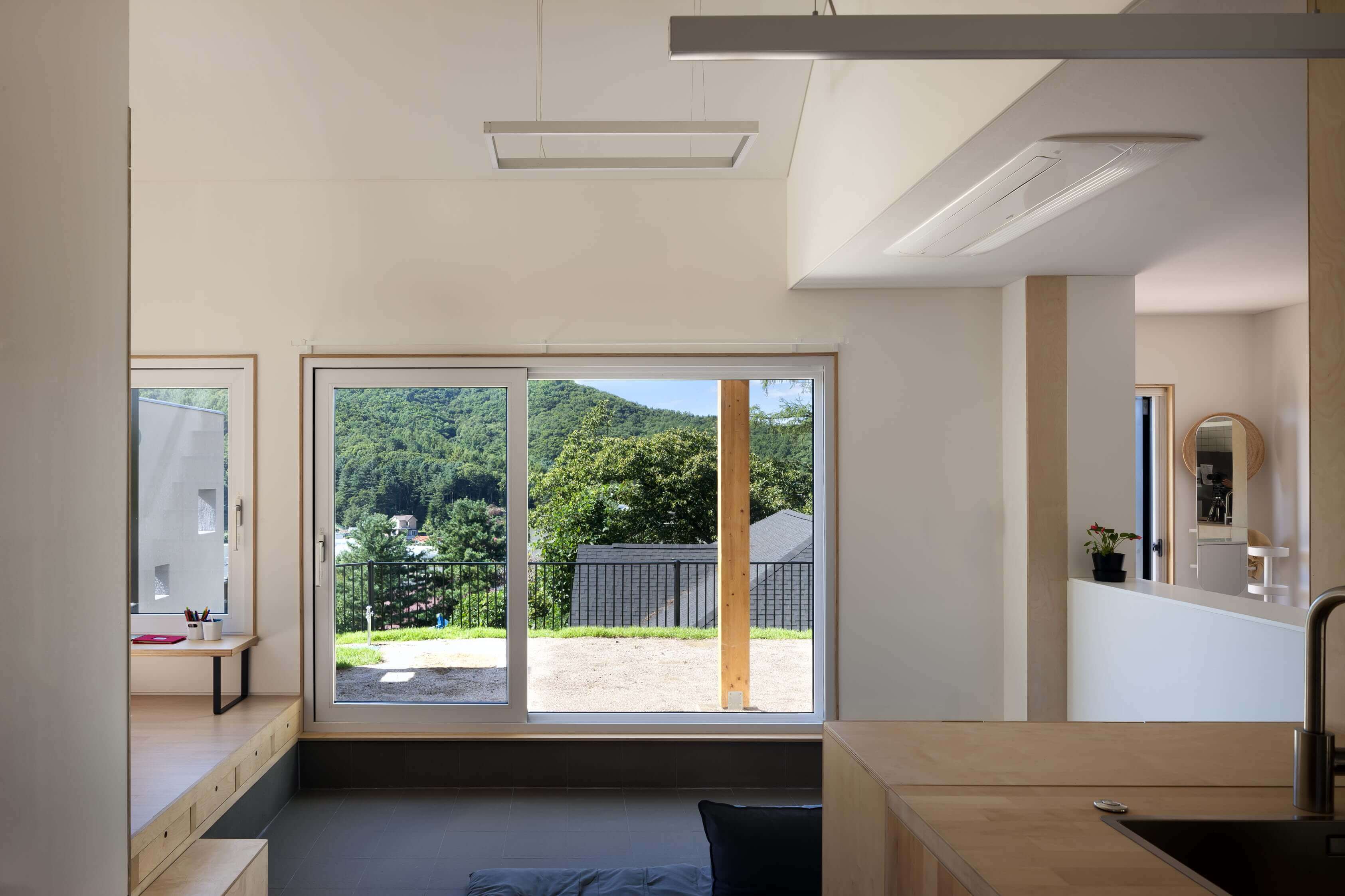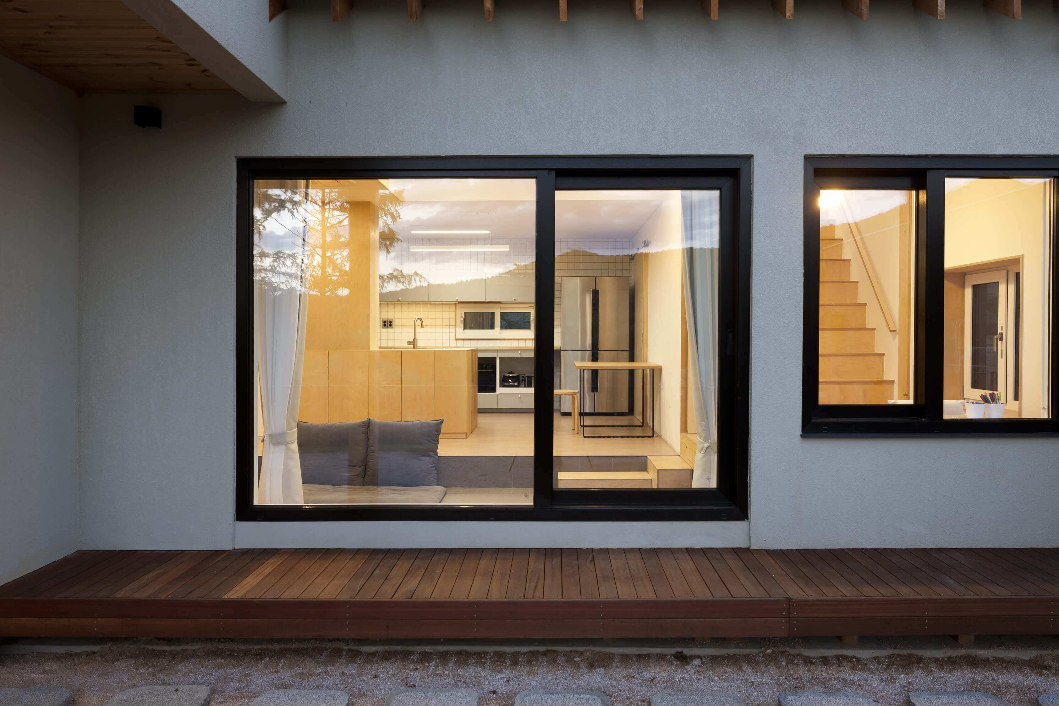가족 구성원의 수가 만았던 과거에는, 거실이 집의 중심으로서 무척 중요한 공간이었다. 손님 접대도 주로 거실에서 이루어졌다. 그러나 요즘은 주방이 가사의 중심이자 가족들이 모이는 가장 중요한 공간이 되었다. 집을 설계할 때 실을 없애고 가족 구성원 각각의 활동을 위한 별개의 방을 배치하는 경우도 늘어나고 있다. 이 집에서도 주방과 식당은 거의 집의 중심이라 할 수 있다. 주방은 거실이나 마당, 다락, 손님방 등 모든 공간과 연결되어 있다. 그리고 하온의 아버지는 ‘안전한 집’을 원했다. 안전한 집이띾 무엇인가. 먼저 집은 태풍이나 폭우, 더위와 추위 같은 자연이나 혹은 타인의 위협으로부터 인간을 보호해야 한다.