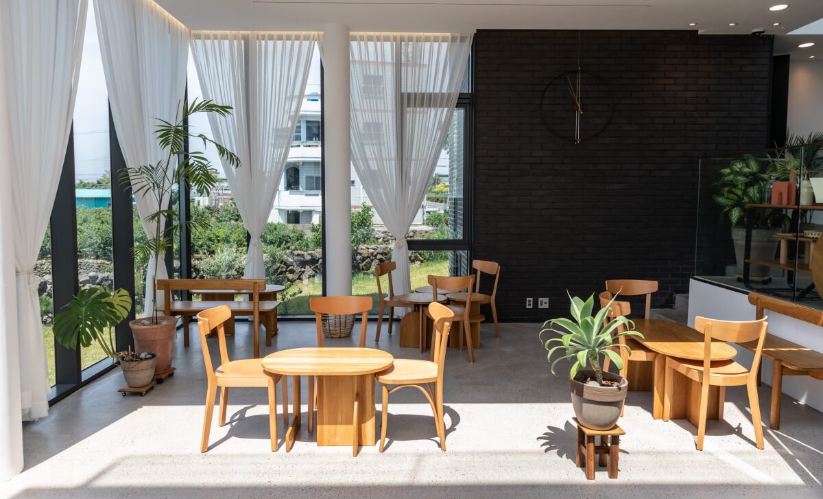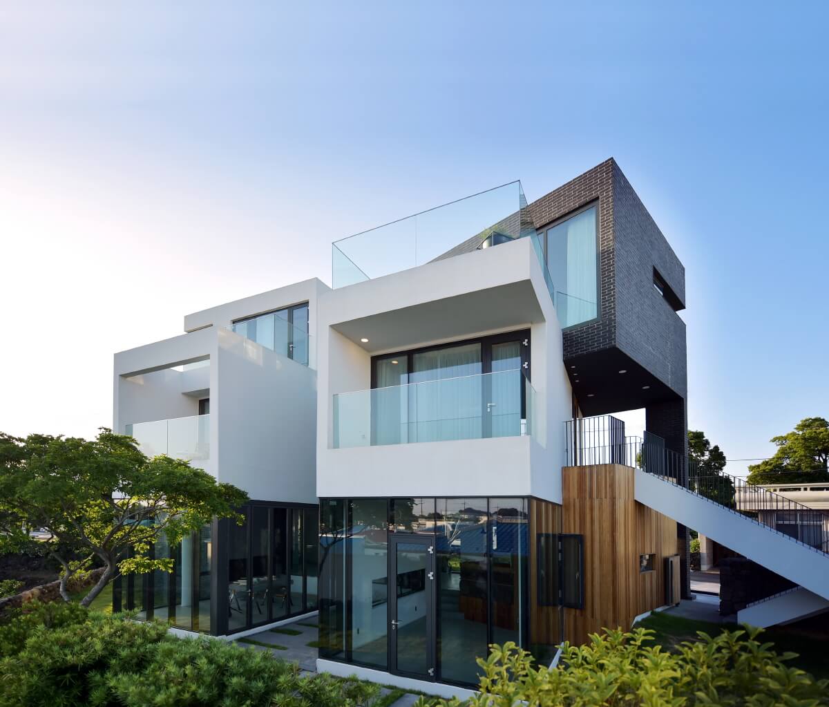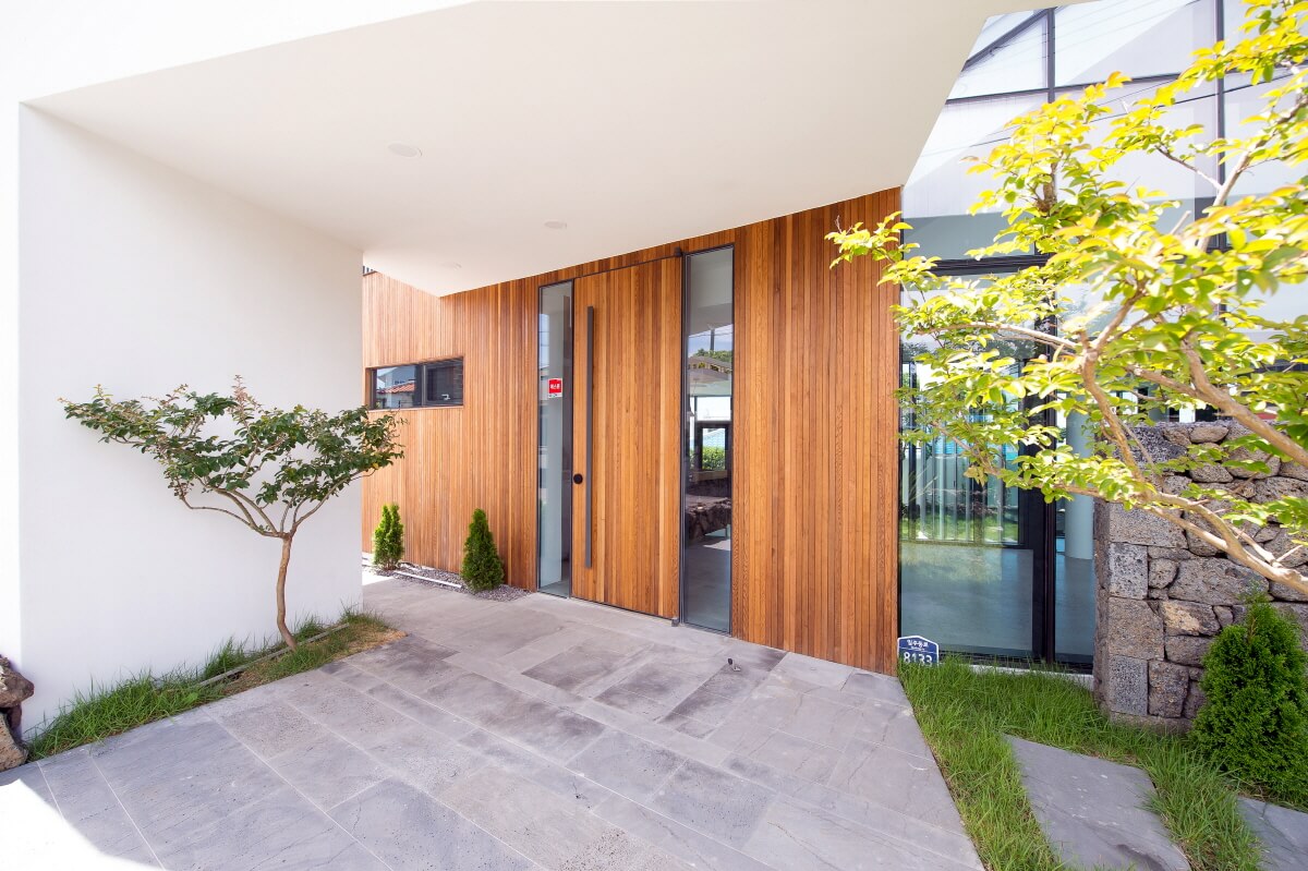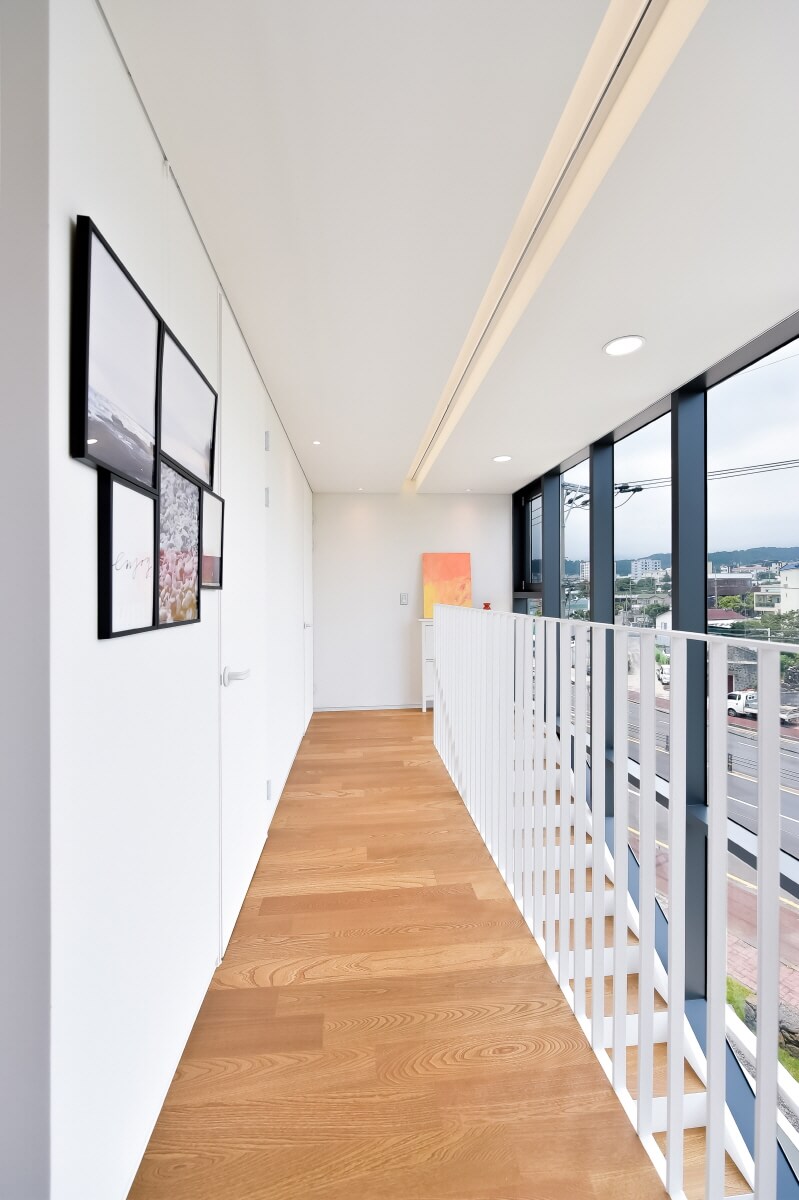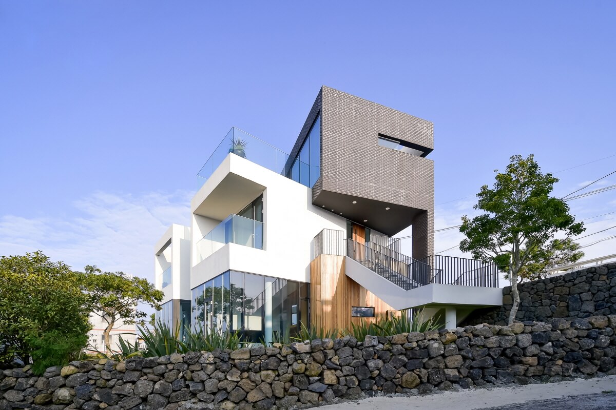 계단과 복도에서 한라산 조망을 할 수 있도록 하였다. 이 부분에 커튼을 설치하여 커튼의 열리고 닫힘에 따라 영역의 변화에 따른 외부와의 관계가 다양하게 이루어지며, 프라이버시를 확보하고 40M도로의 소음과 좋지 않은 환경을 차단하는 역할을 한다.