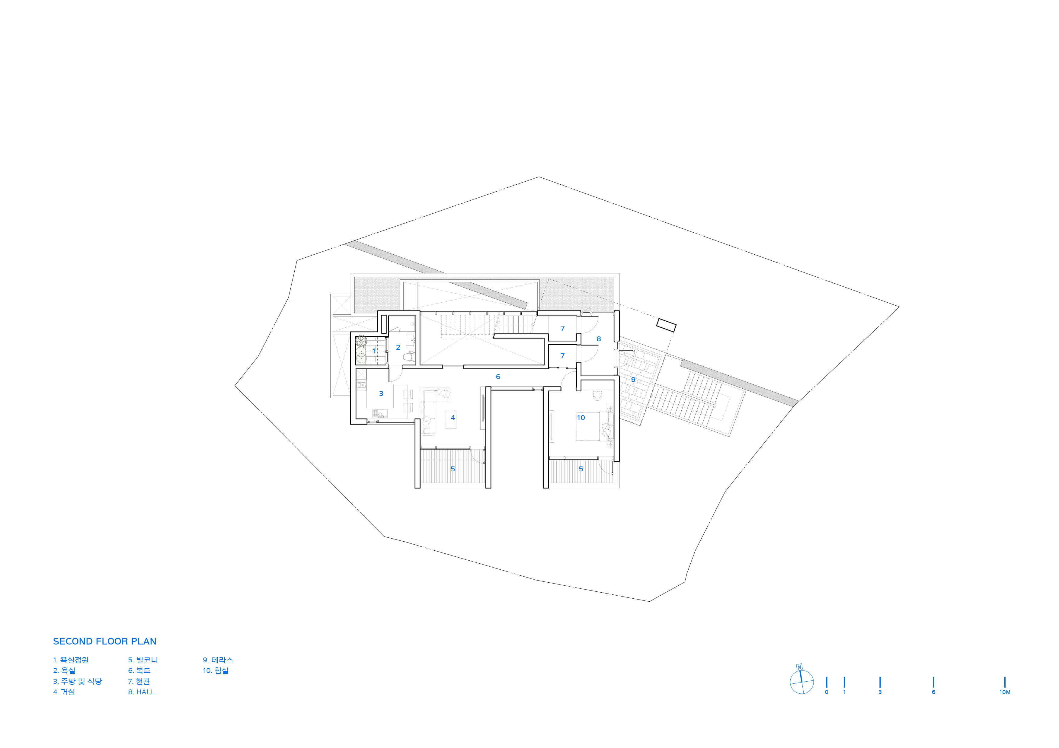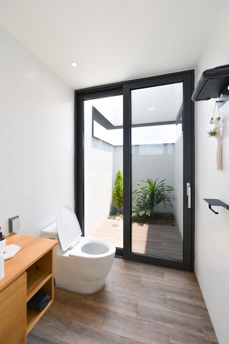 욕실 및 화장실은 항상 폐쇄되어 답답함과 내/외부 관계를 갖지 못하는 공간이다. 각 층의 욕실 및 화장실에는 작은 정원들을 만들어 하늘과 자연을 느낄 수 있도록 함으로서 다양한 관계를 형성한다. ■