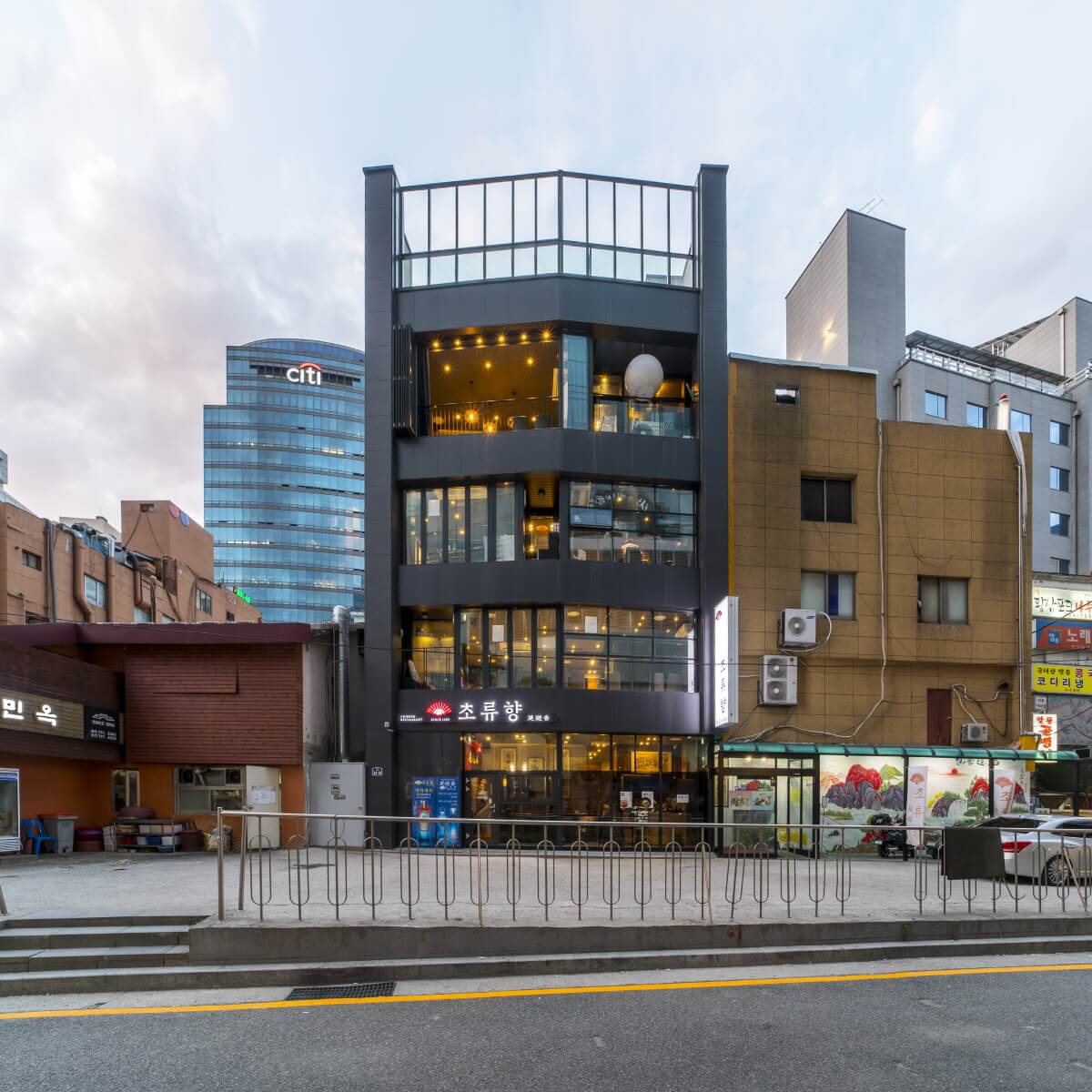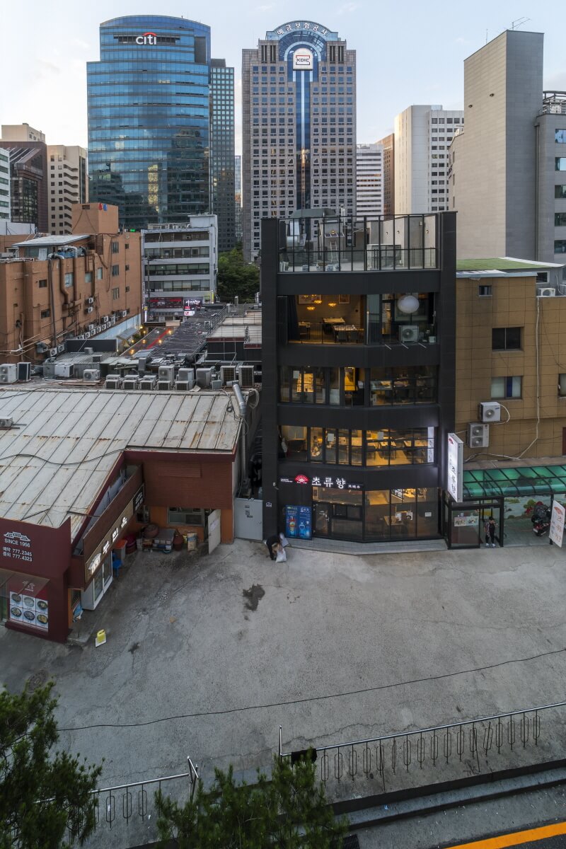 최근 들어 재개발로 묶여있다가 개별 필지에 대한 건축의 금지가 해제 되자마자 오랜기간 동안 기존상권을 유지해온 지역상인들 및 토지주들이 하나둘씩 신축공사를 하고 있는 동네이다. 건축주는 대만에서 넘어와 우리나라에서 터를 잡고 정착한 화교이다. 30년 넘게 화교1세대부터 3세대에 걸쳐 초류향이라는 중화요리집을 운영하고 있었다. 한국국적을 취득하였어도 여전히 고향의 전통적인 습관이나 방식을 고수해왔었기 때문에 식당 내부의 동선을 취하는 방식이나 벽에 걸려 있는 그림들 소품 하나하나가 이국적일 수밖에 없다.