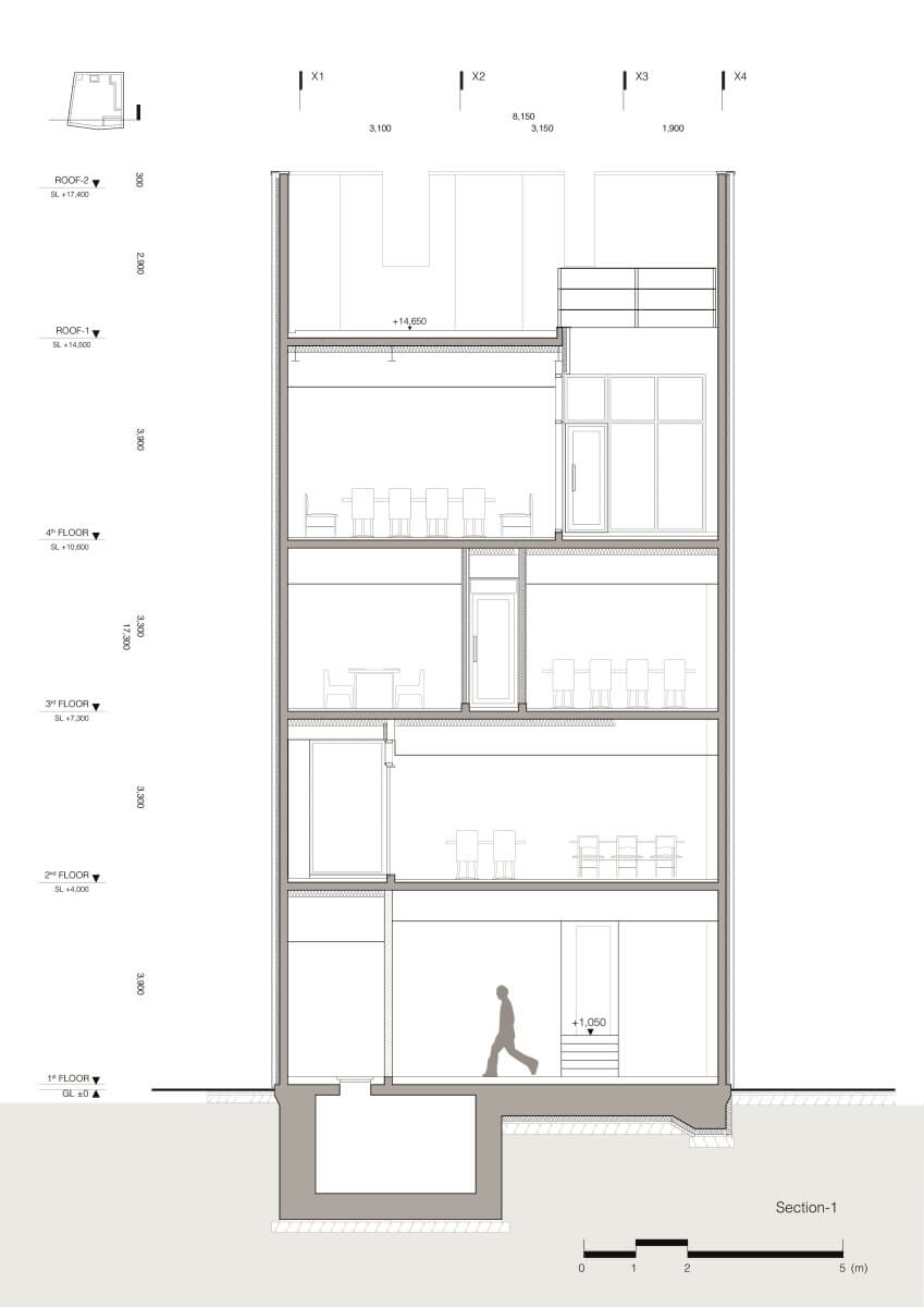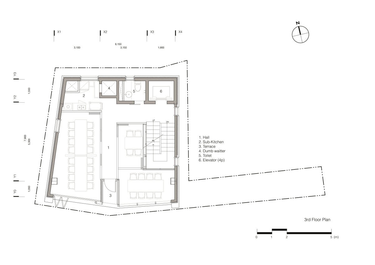 대지는 일반상업지역이라 하더라도 사이트 주변일대가 복잡한 방화지구이고 땅면적이 33평정도이며 4층 이하의 건축 제한을 가지고 있었다. 전면의 공터는 도로가 아닌 건축이 금지된 공지였고, 깃발 형태의 땅모양이 골목길(도로)에 접한 폭은 2미터밖에 되지 않았기 때문에 상, 하수등의 도시기반 시설에 접근하기가 무척 곤란하였다. 이처럼 극도로 제한된 조건 안에서 건축을 한다는 것은 건축가로서 매우 곤욕스러운 일이지만 새롭게 단장한 중화요리집이 완성되었다. ■