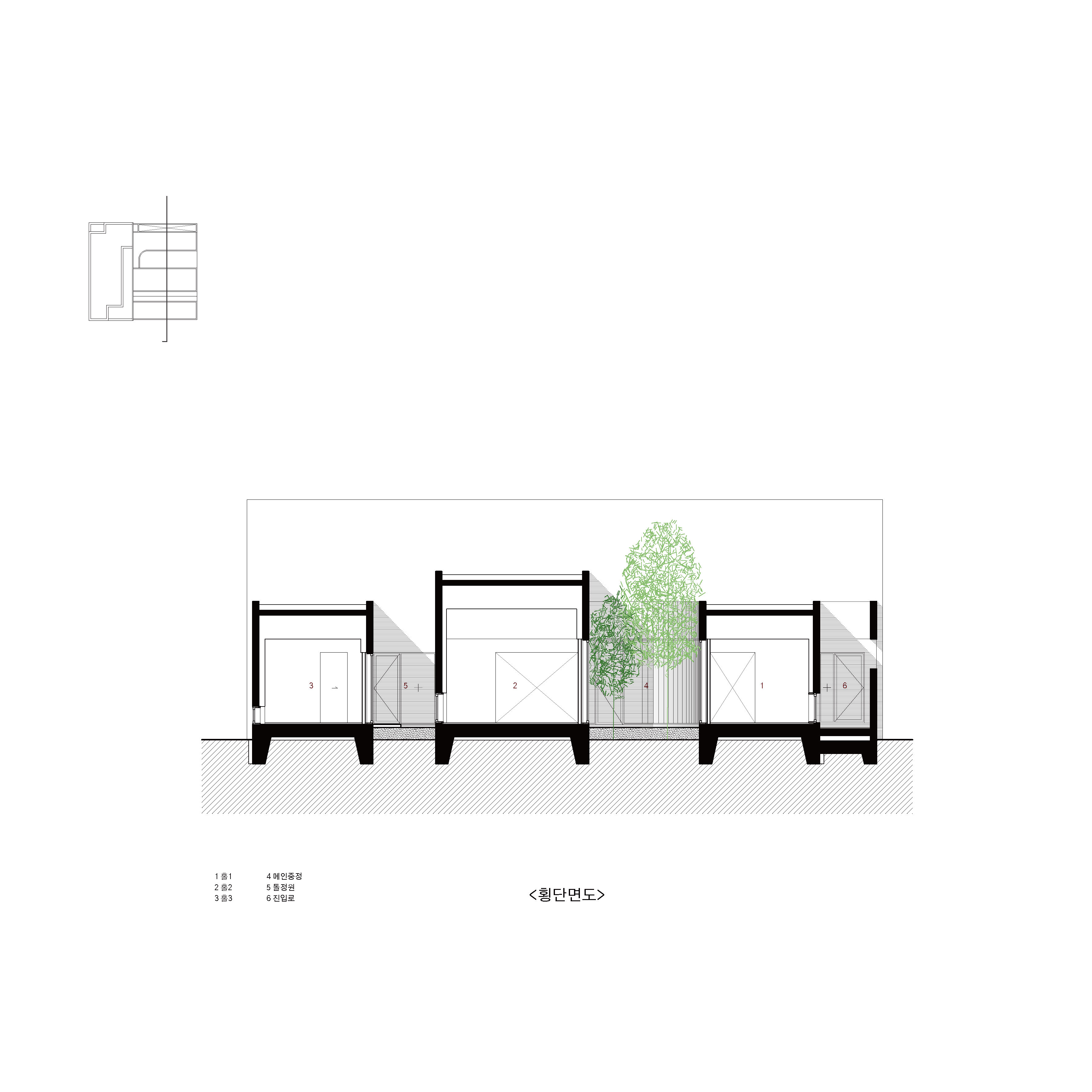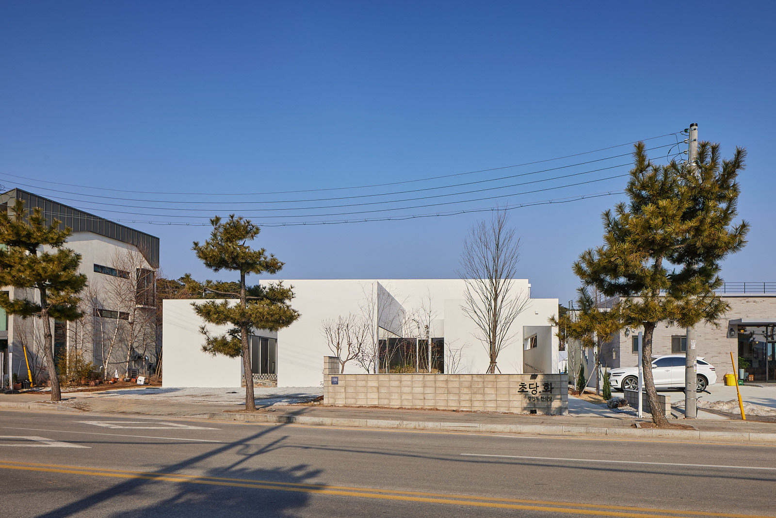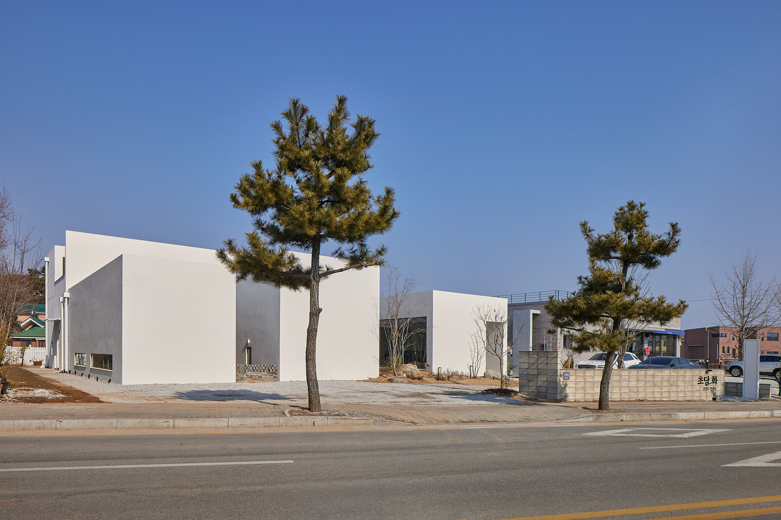 다채로운 색상의 한식을 한데 담아내는 하얀 그릇처럼, 건축공간이 식사를 담아내는 배경이 되어야 한다 생각했다. 음식을 돋보이게 하려 스스로는 담담하게 남는 하얀 그릇처럼, 건축공간도 스스로를 너무 드러낼 필요는 없었다. 그릇이 음식의 배경이 되고, 공간이 식사의 배경이 된다. ‘배경으로서의 건축’으로 공간의 성격을 정했다. 그 후에는 다시금 건축주의 초기 제안이었던 후정에 생각이 미쳤다.
