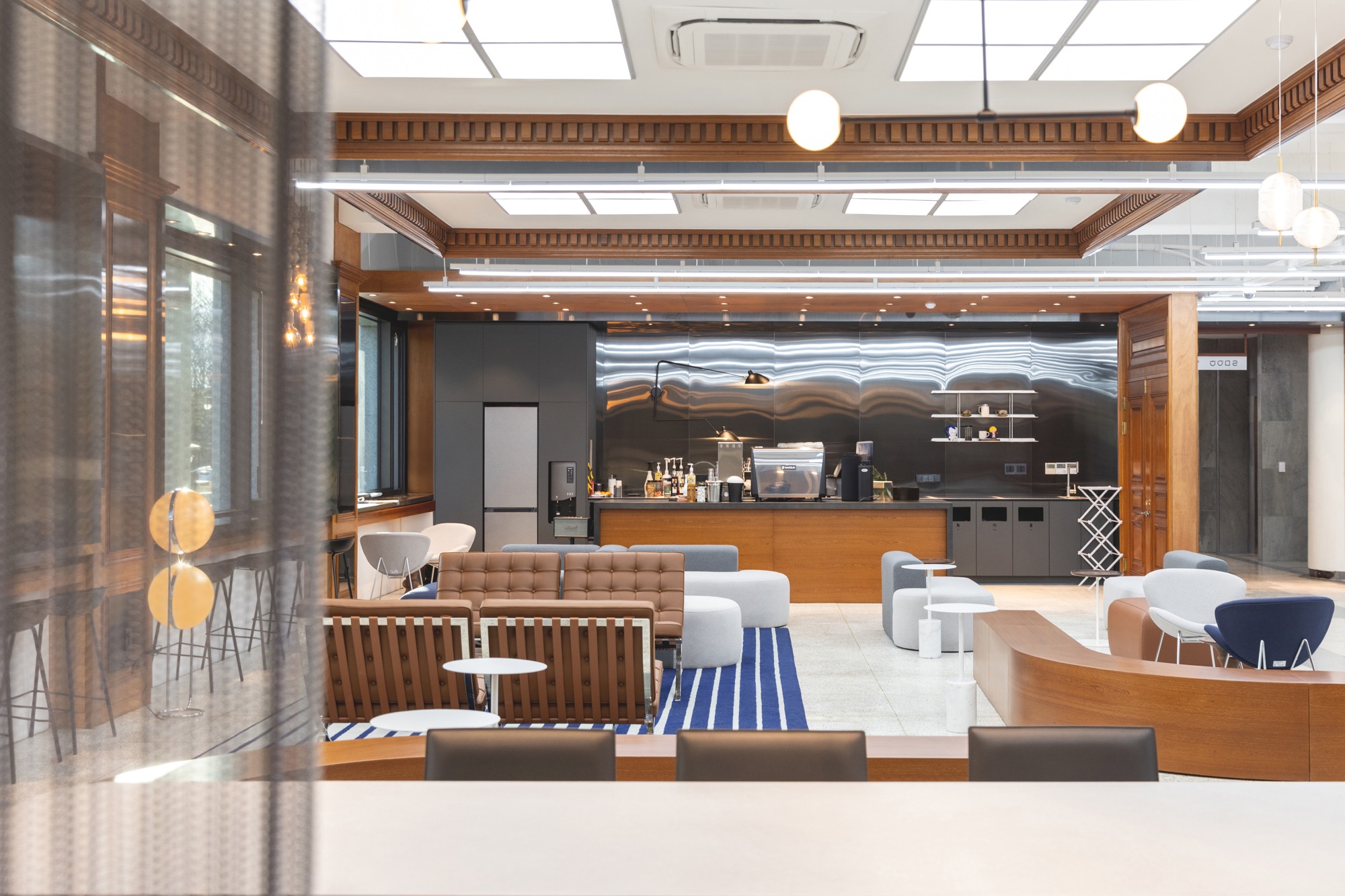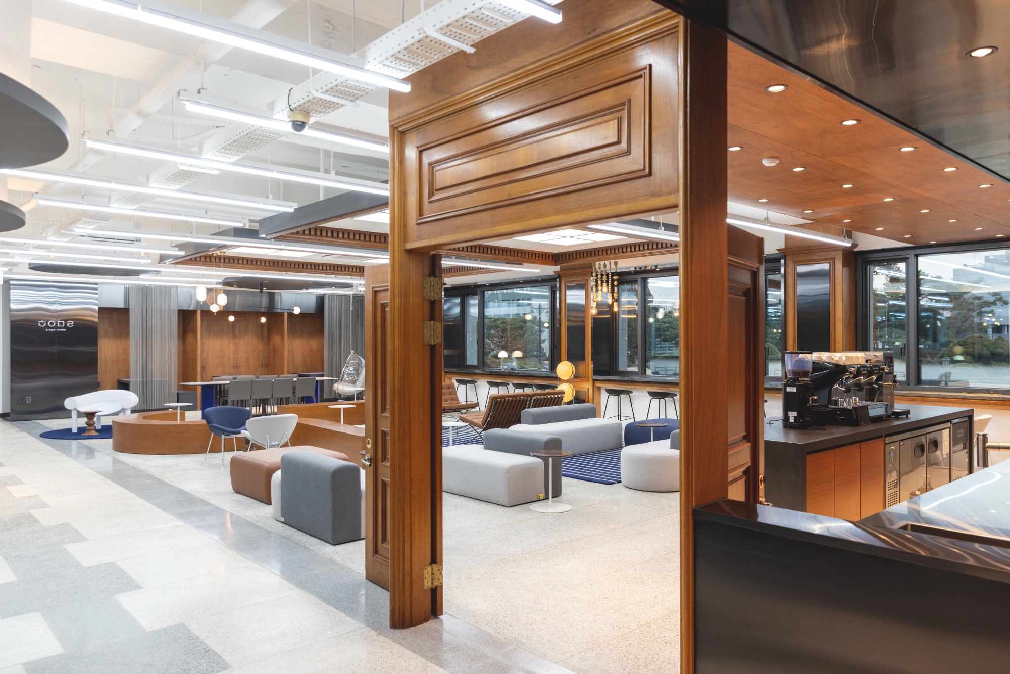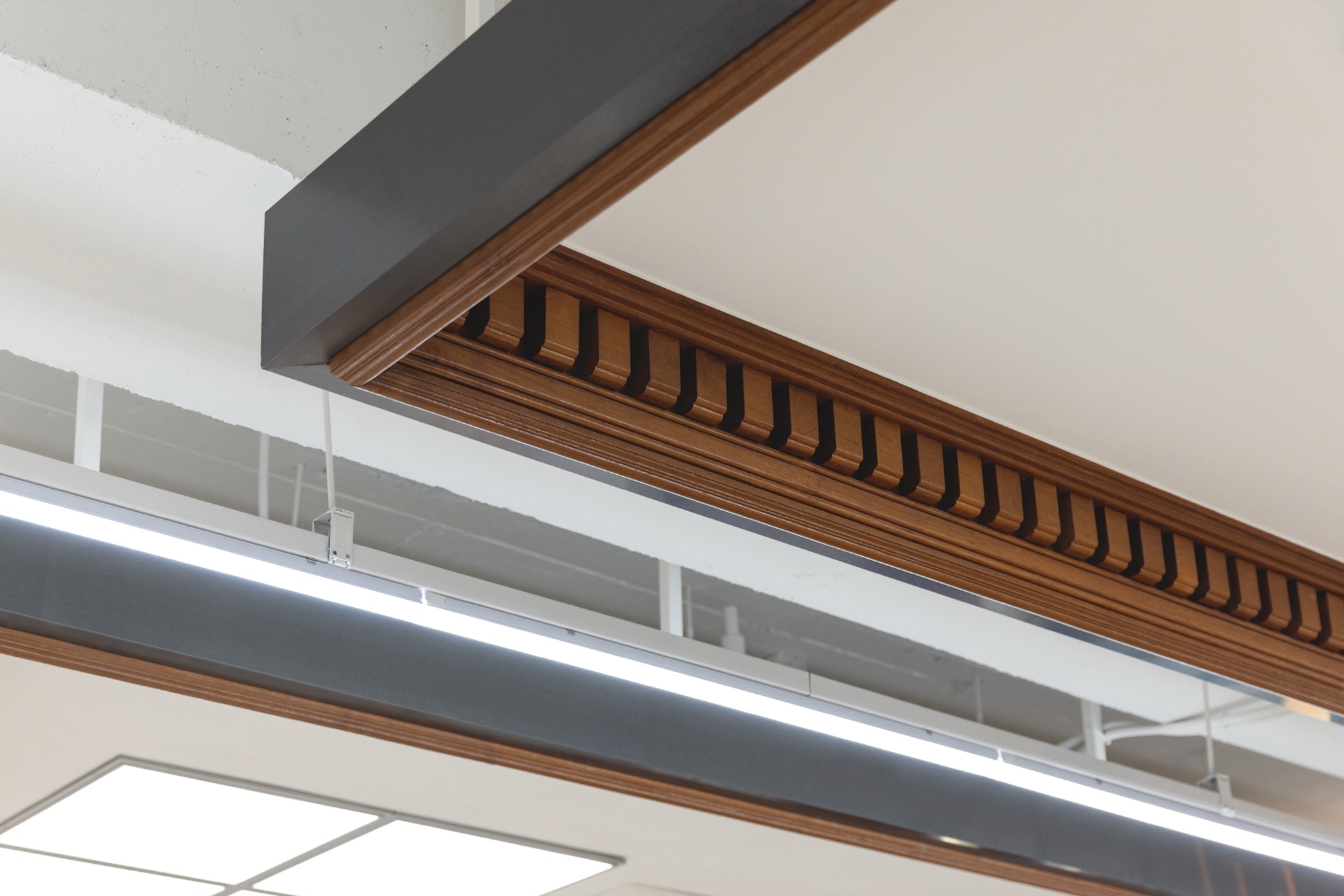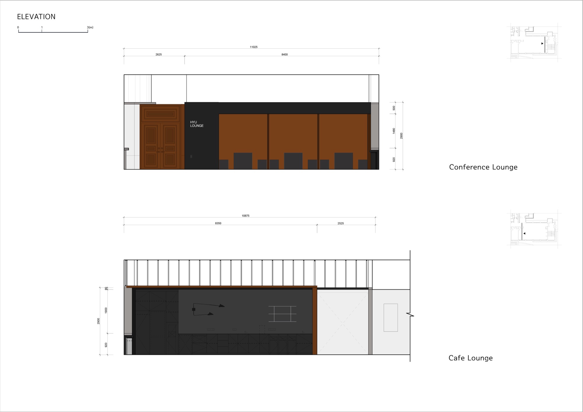 대회의실의 문은 마치 과거와 현재를 연결하는 의미로 공간과 공간 사이를 연결해주는 기능적인 문은 사라지고 시간과 사용자를 연결하는 문으로서 의미를 가진다. 대회의실을 복도와 맞닿은 벽을 철거해 개방감이 있는 열린 공간으로 계획했다. 하지만 기존 천정 일부와 우드 몰딩을 상징으로 남겨 전반적인 분위기의 통일성을 연출했다. 기존에 있던 우드 몰딩과 문을 존치하여 과거의 기억들을 지우지 않고 현대적인 것과 잘 섞어 과거와 현재가 동시에 존재하는 추억이 되는 공간을 기대했다.