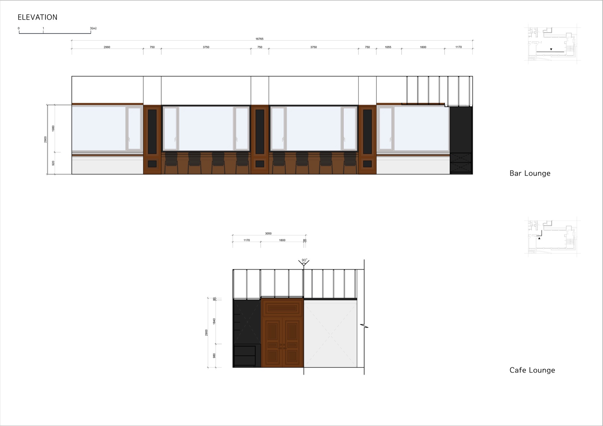 바 라운지는 한양대 에리카의 호수와 잔디밭이 펼쳐지는 장면을 담은 공간으로 엠보드로 프레임을 맞추어 넣었고 그 속에서 창밖을 보며 여유를 즐길 수 있는 바테이블을 제작하였다.