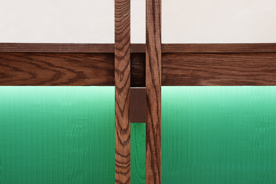 민트빛 목구조, 단단하지만 오묘하고 부드러운 구조체
