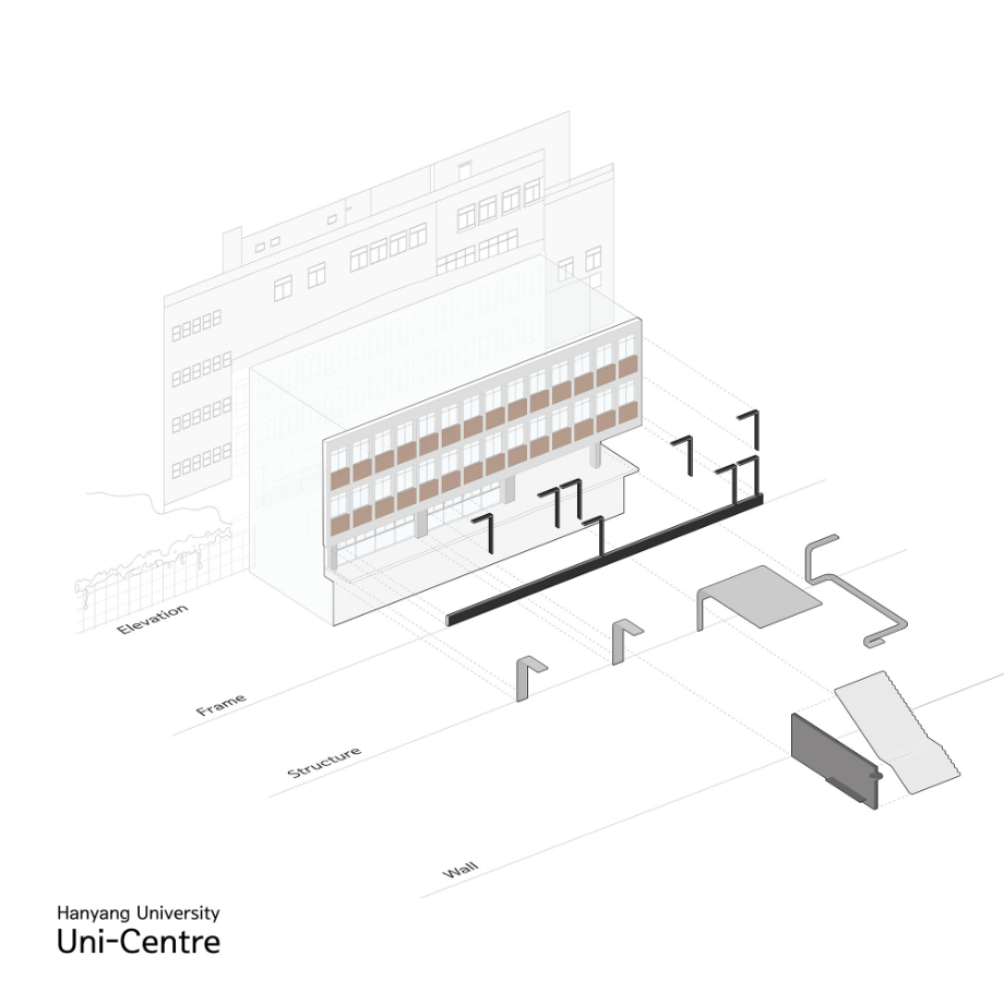유니센터는 단절된 공간과 기능을 유기적으로 통합함으로써, 학생들이 머무르고 교류하며 필요한 정보를 얻을 수 있는 캠퍼스 복지의 중심 플랫폼으로 기능하게 된다. 구조적 변화, 재료의 선택, 시선의 흐름, 체류의 가능성을 통해 기존 공간을 재해석하며, 캠퍼스의 미래 지향적 공간 모델로서 새로운 기준을 제시한다.◼︎