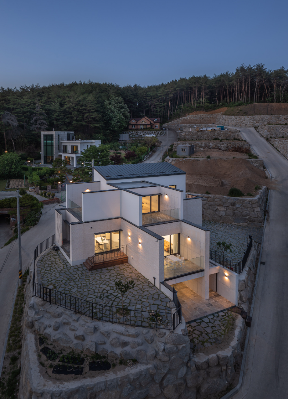 도시의 주변 자연지형적 경관을 가진 곳곳이 다도해의 섬처럼 개발되고 있다. 연속적이고 흐름으로써 지형을 다루는 것이 아닌 분절과 획일화된 택지에서 하나의 건축 부지를 매입해서 주택 설계를 의뢰할 때 참으로 곤혹스럽다. 대지를 치유하는 방법을 찾거나 개선하여 다시 살만한 장소로 만드는 건축적 간섭을 해야 하기 때문이다.